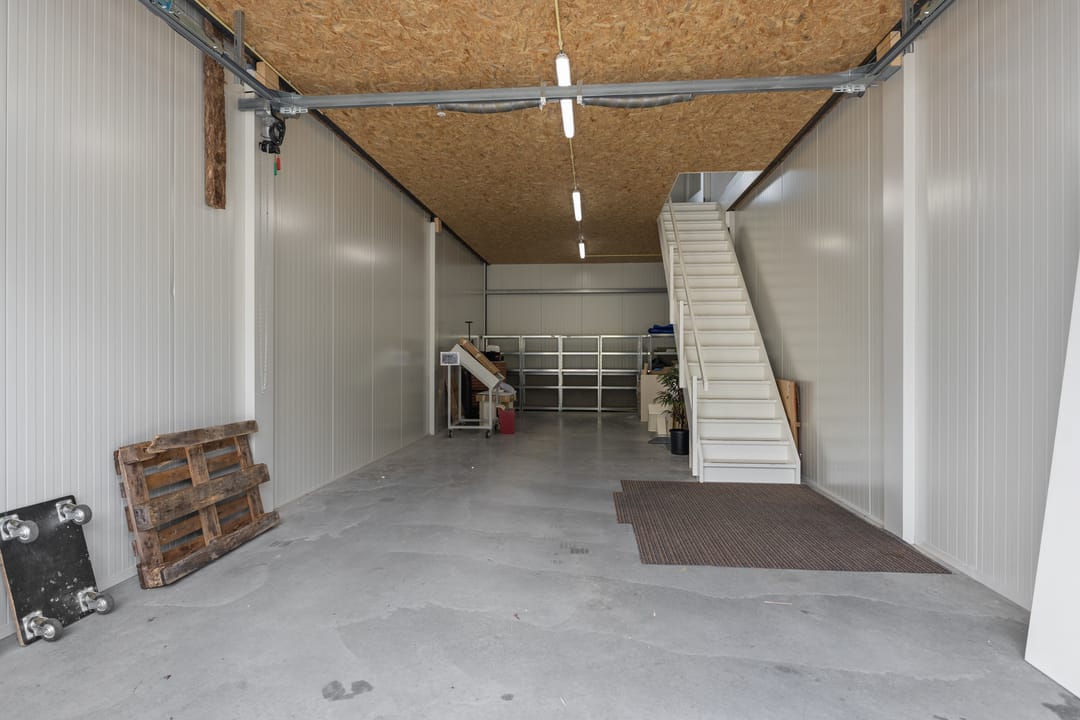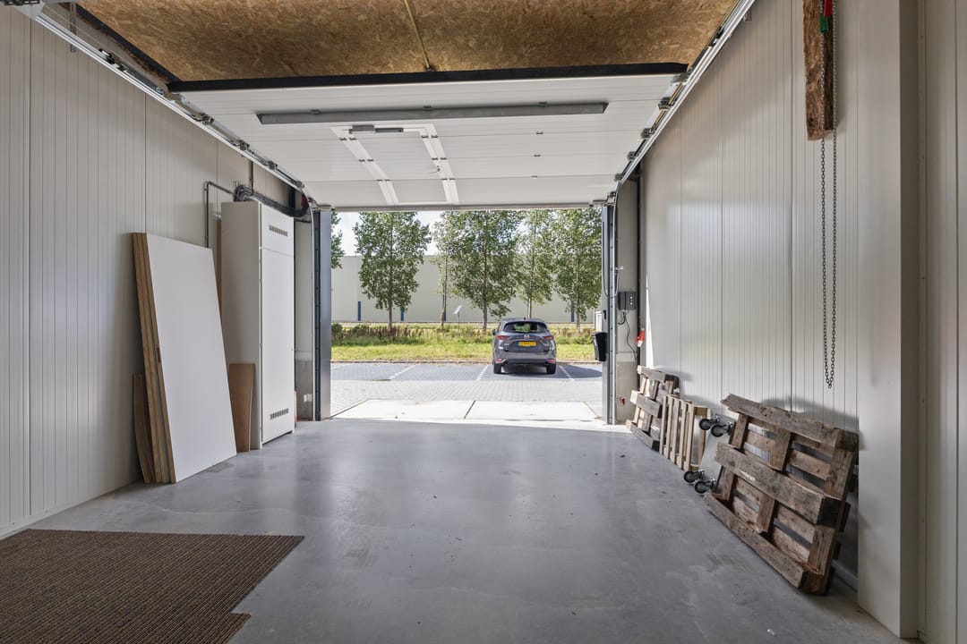 - Overheaddeur: 4 x 4 meter (geïsoleerd, met geïntegreerde loopdeur);