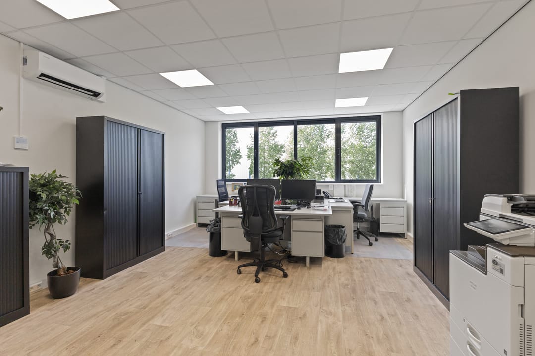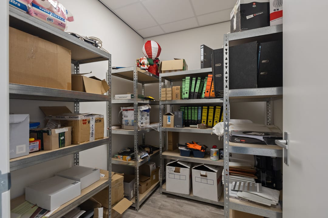De verdieping is ingedeeld met een kantoorruimte, archief, spreekkamer, keuken(met heet water voorziening) en een toilet met fontein. De hele verdieping is voorzien van airconditioning/verwarming.