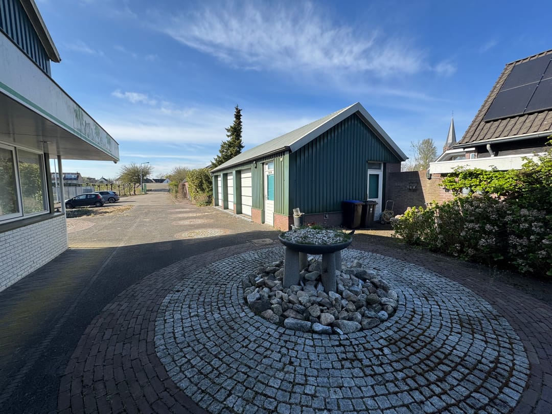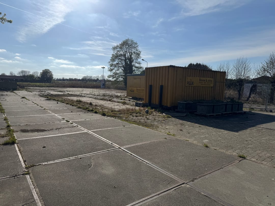Het tot het complex behorende terrein is grotendeels verhard middels asfalt, klinkerbestrating en prefab betonplaten en ingericht als parkeerterrein en ten behoeve van stalling van materieel en opslag van materiaal.