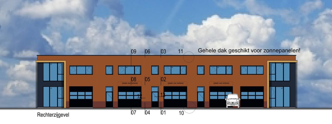 Op Businesspark Winterswijk zijn 14 high-end bedrijfsunits gerealiseerd aan het Europark. Moderne werkruimtes van circa 100 tot 159 m² waar jij als ondernemer gelijk aan de slag kunt! De units zijn uitgevoerd met fraai metselwerk, hoogwaardig afgewerkt met aluminium kozijnen en voorzien van een elektrisch bedienbare overheaddeur. Dankzij de strategische ligging in Winterswijk rijd je direct de snelweg op en ben je voor klanten uitstekend te bereiken.