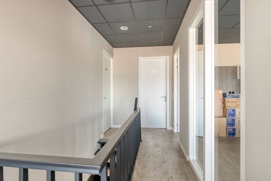 De centrale hal biedt toegang tot een kantoorruimte aan de rechterzijde en een kantine met pantry en toiletten aan de linkerzijde. Rechtdoor bereikt u de ruime bedrijfshal, die voorzien is van een lichtstraat voor extra daglicht. Aan de rechterzijde bevindt zich een kleinere ruimte die geschikt is voor opslag of andere doeleinden. De bedrijfshal is tevens bereikbaar via een overheaddeur aan de voorzijde.