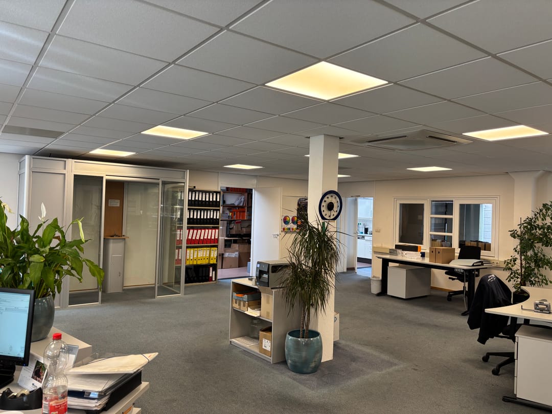 The office is attractively designed with features such as air conditioning, suspended ceilings, toilets, and flooring.