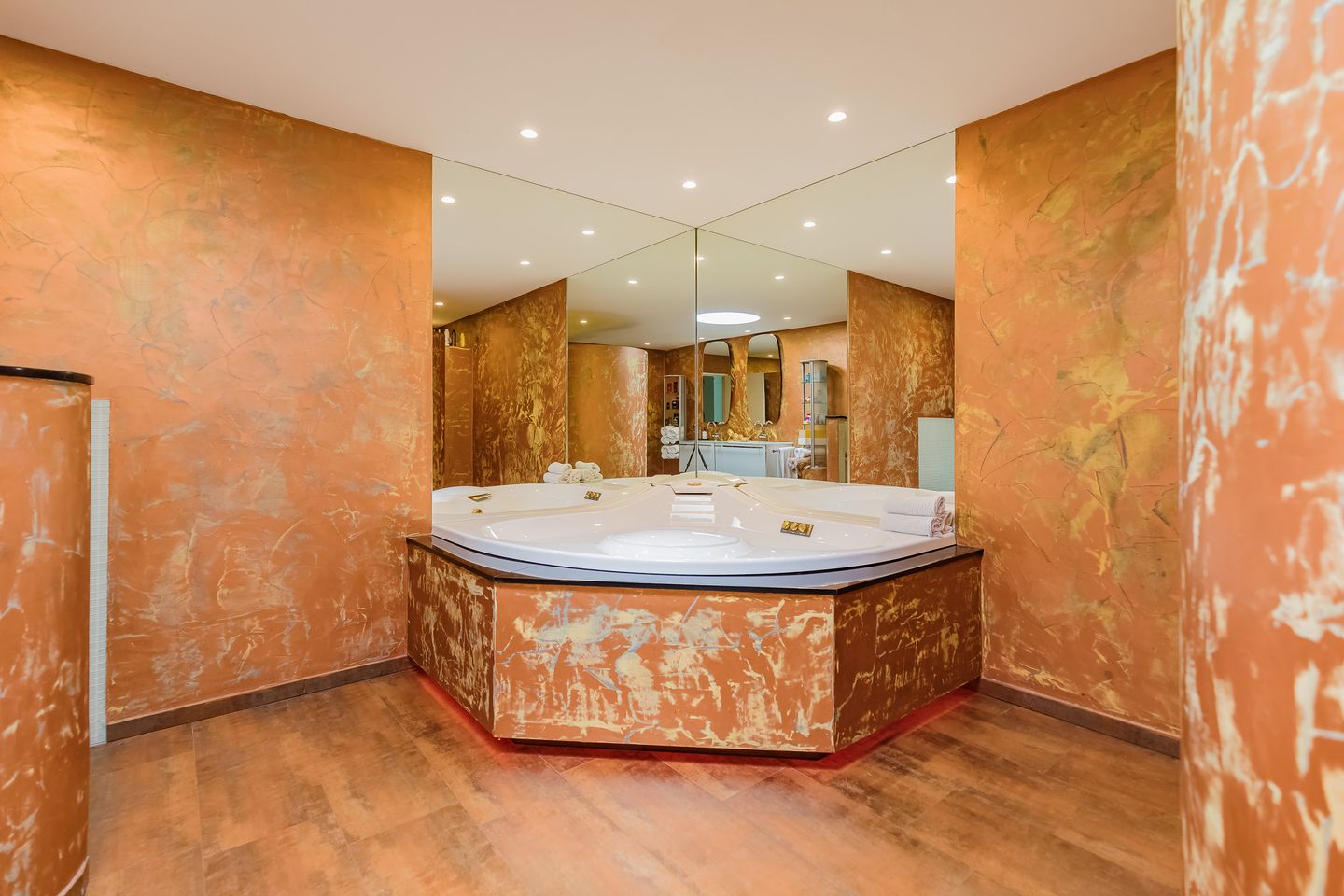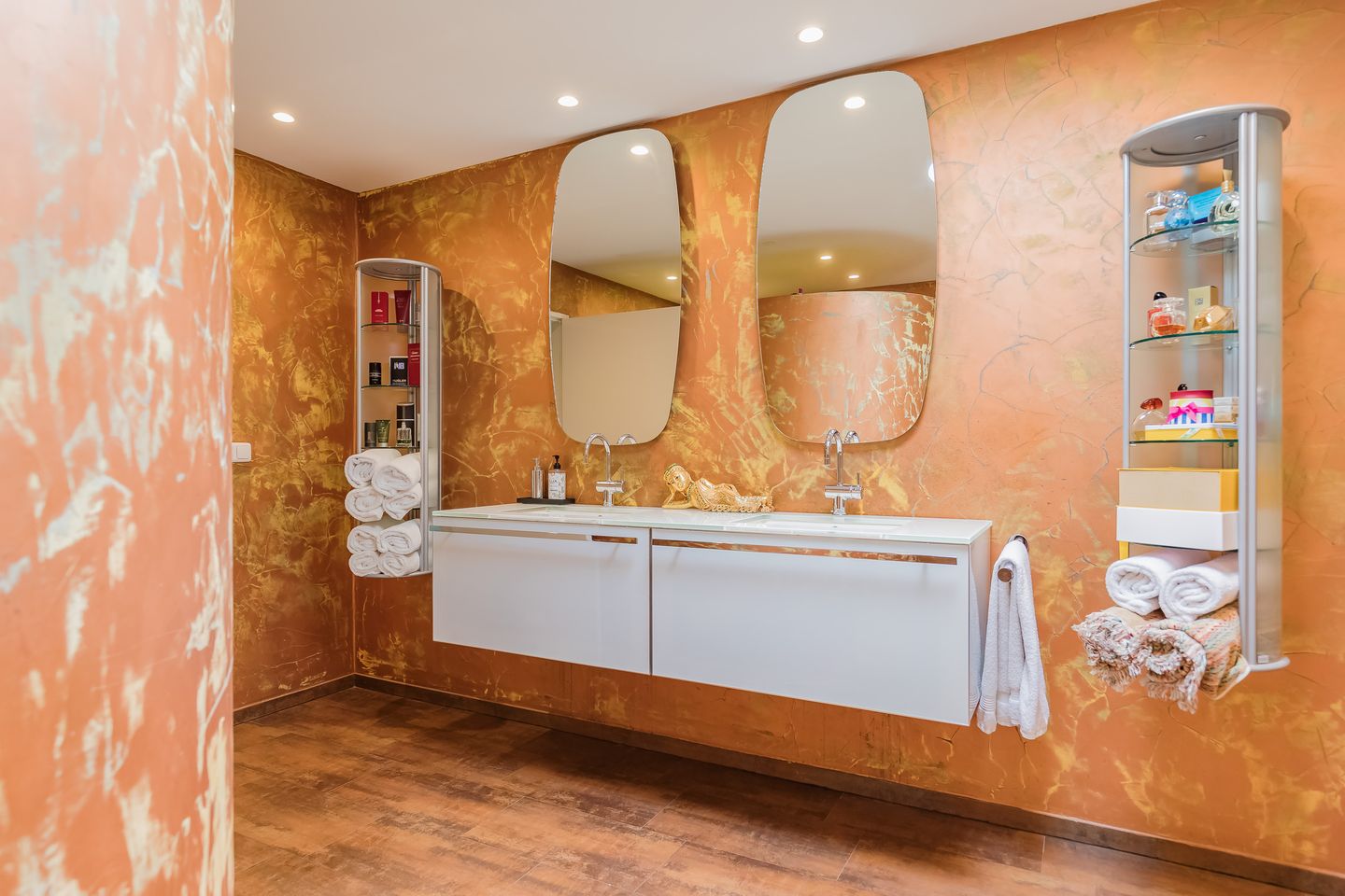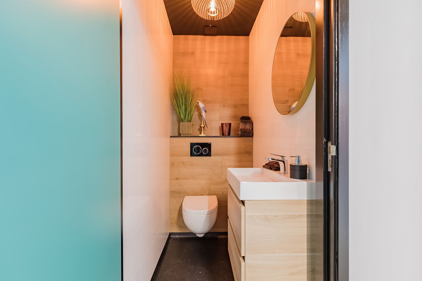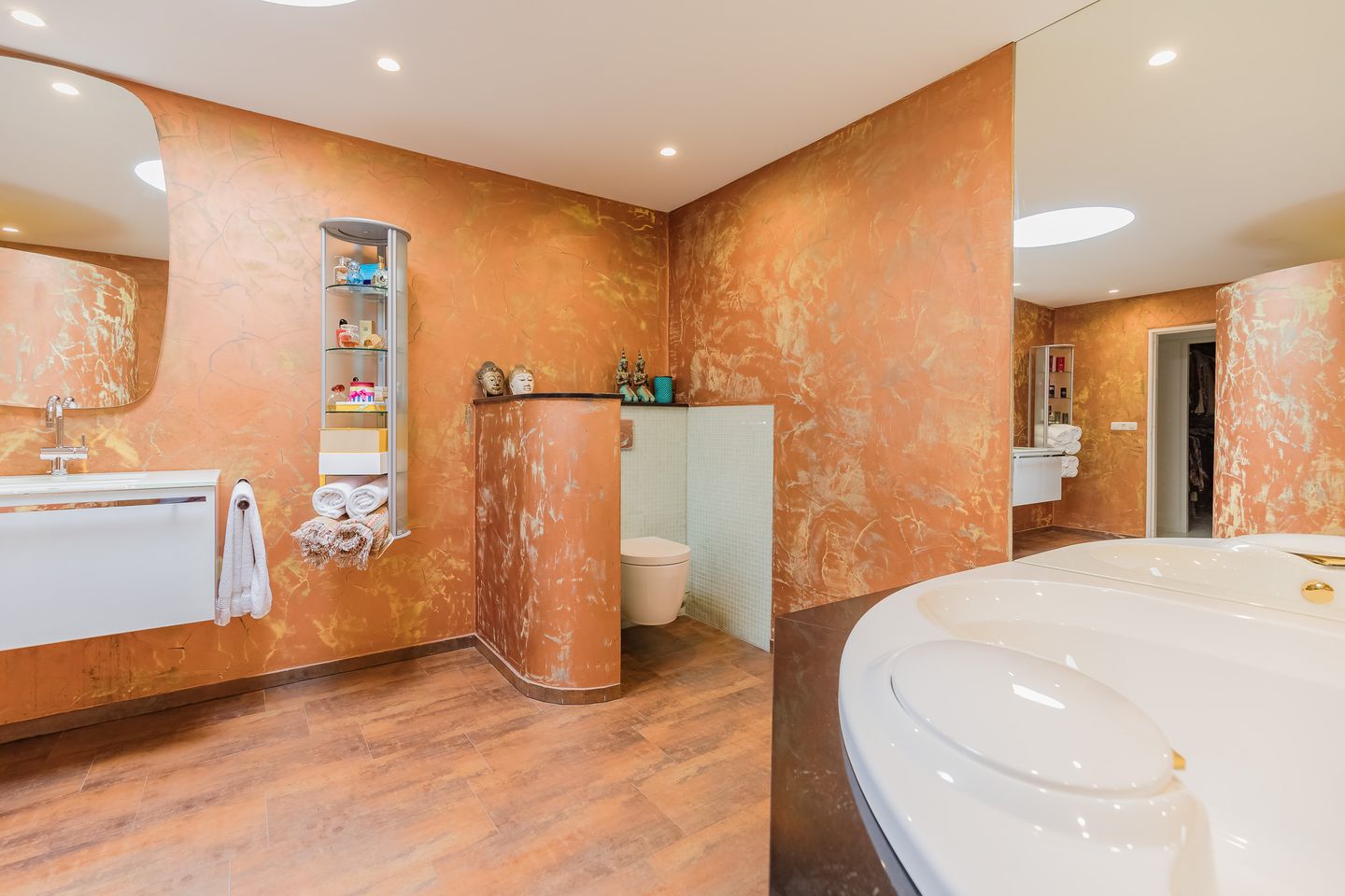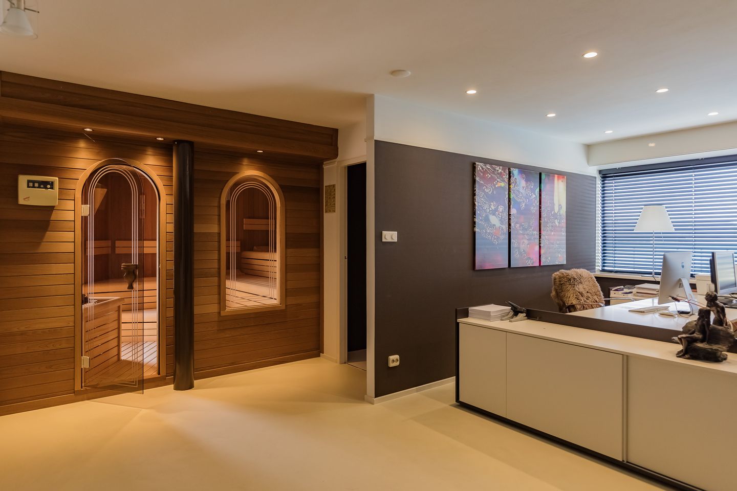 De indeling is als volgt: hal, 2x toilet en urinoir, in beide toiletten een wastafel in meubel, woonkeuken met keuken met inbouwapparatuur, woonkamer met open haard, 2 slaapkamers, kantoorkamer, inloopkast, luxe badkamer met ligbad/whirlpool, douche, toilet en dubbele wastafel in meubel, sauna.