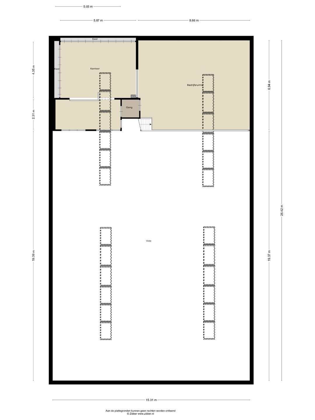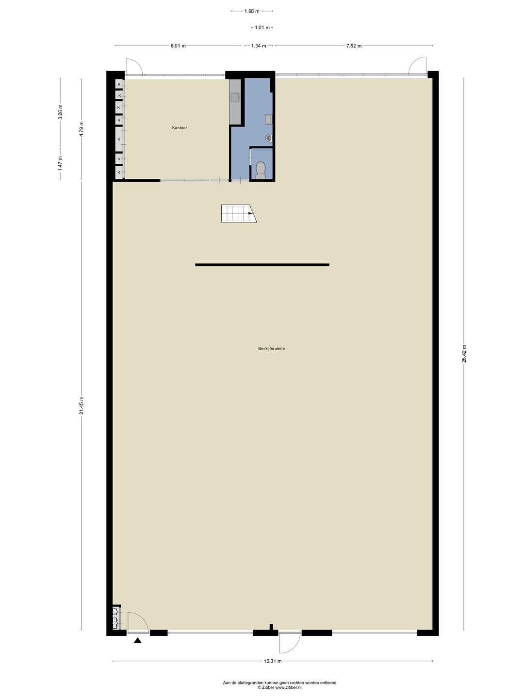 ca. 87 m2 kantoorruimte (incl. verkeers- en sanitaire ruimte)