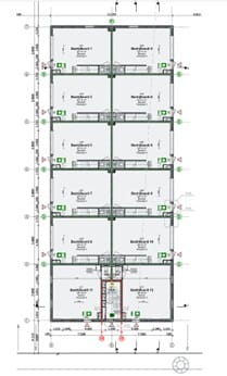 The partition walls between the units serve as load-bearing walls for the upper floors and are made of sand-lime brick.