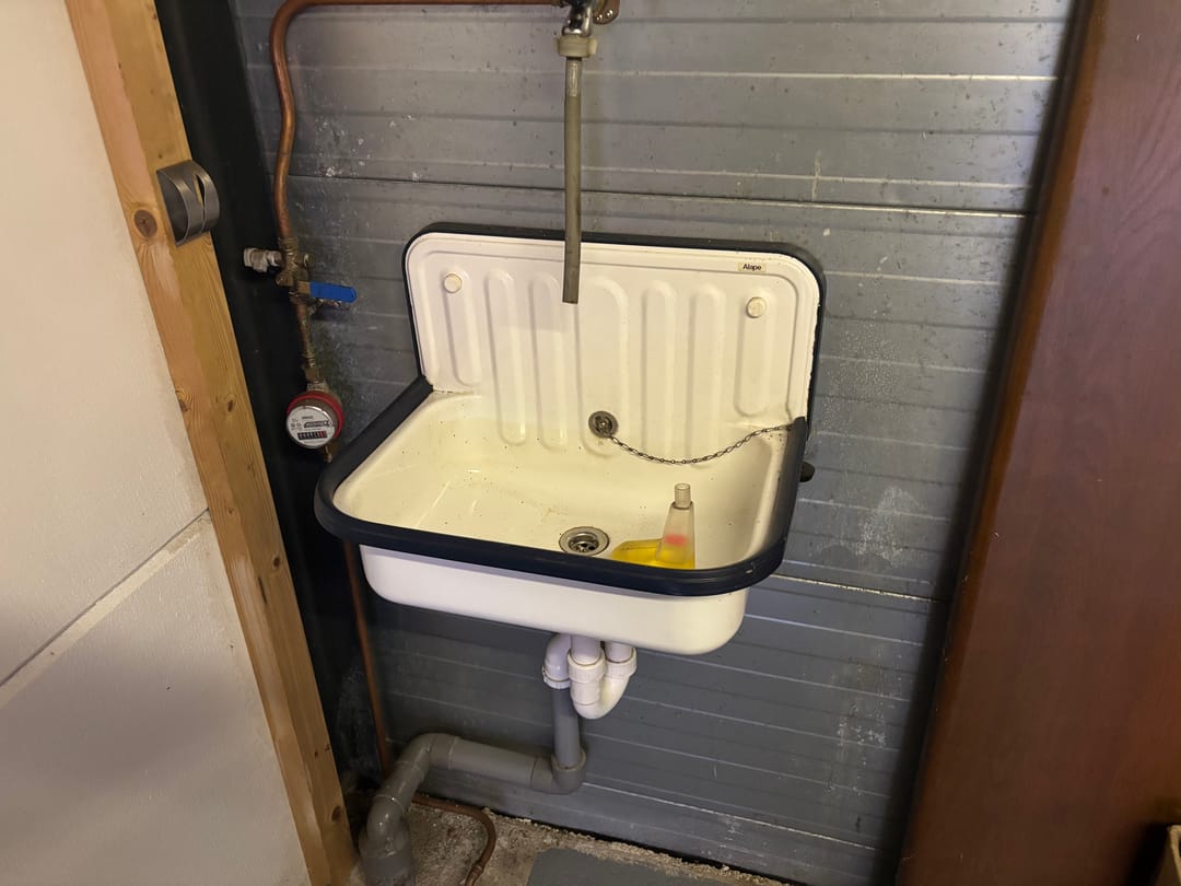 - uitstortgootsteen met water aftappunt aangesloten op vuilwaterriool