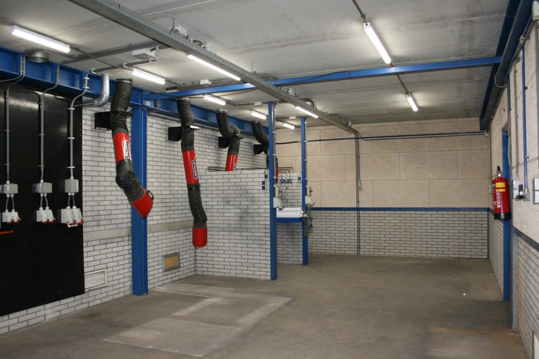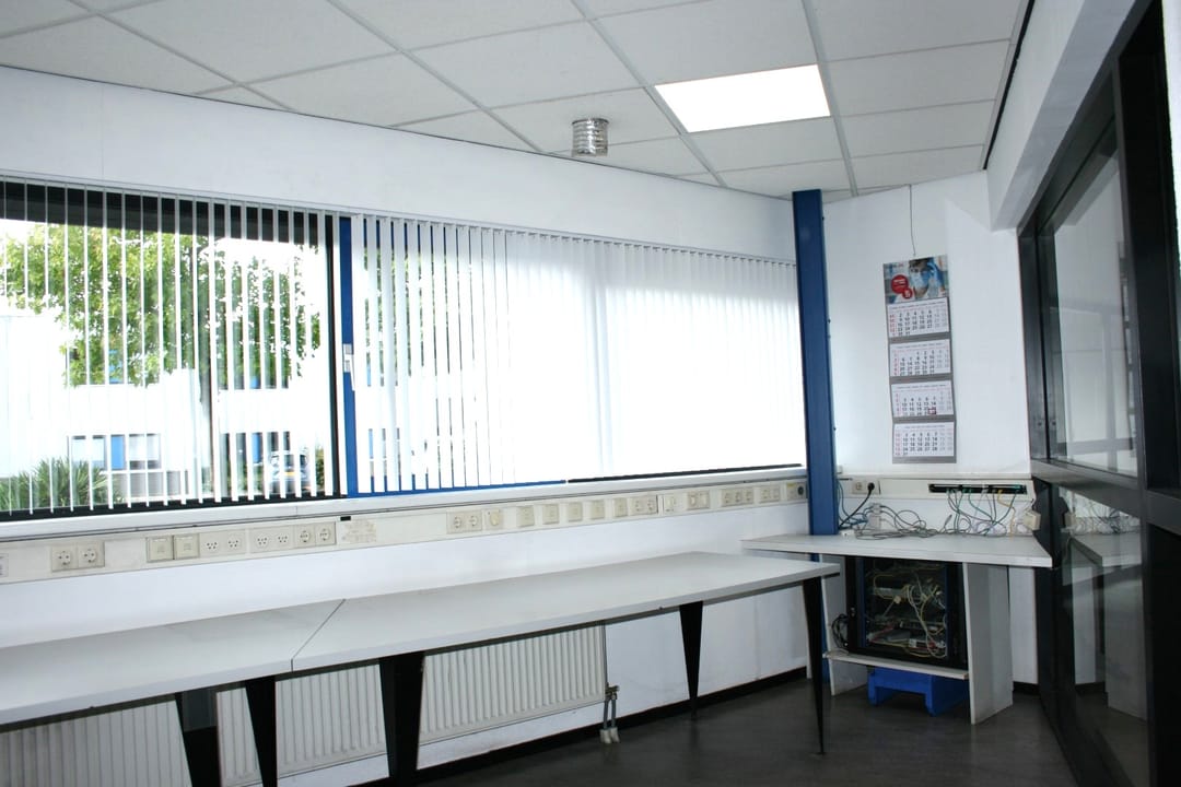 Automatic sliding doors lead to the central hall (which also serves as a vestibule) where the meter cupboards are located. A second set of electric sliding doors provides access to the production hall. At the front of the production hall are two offices with plenty of natural light, as well as a changing/laundry room and restrooms.