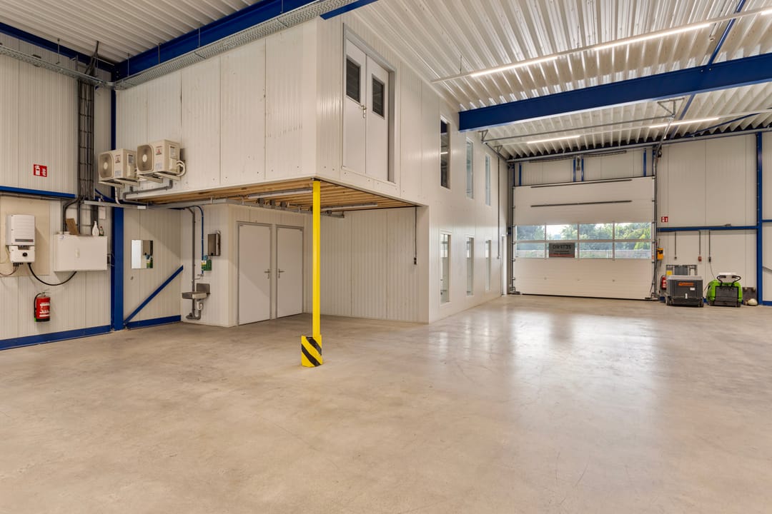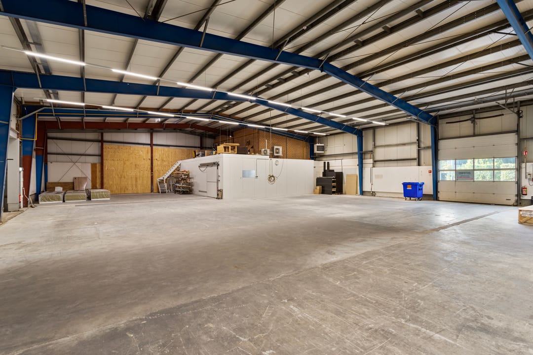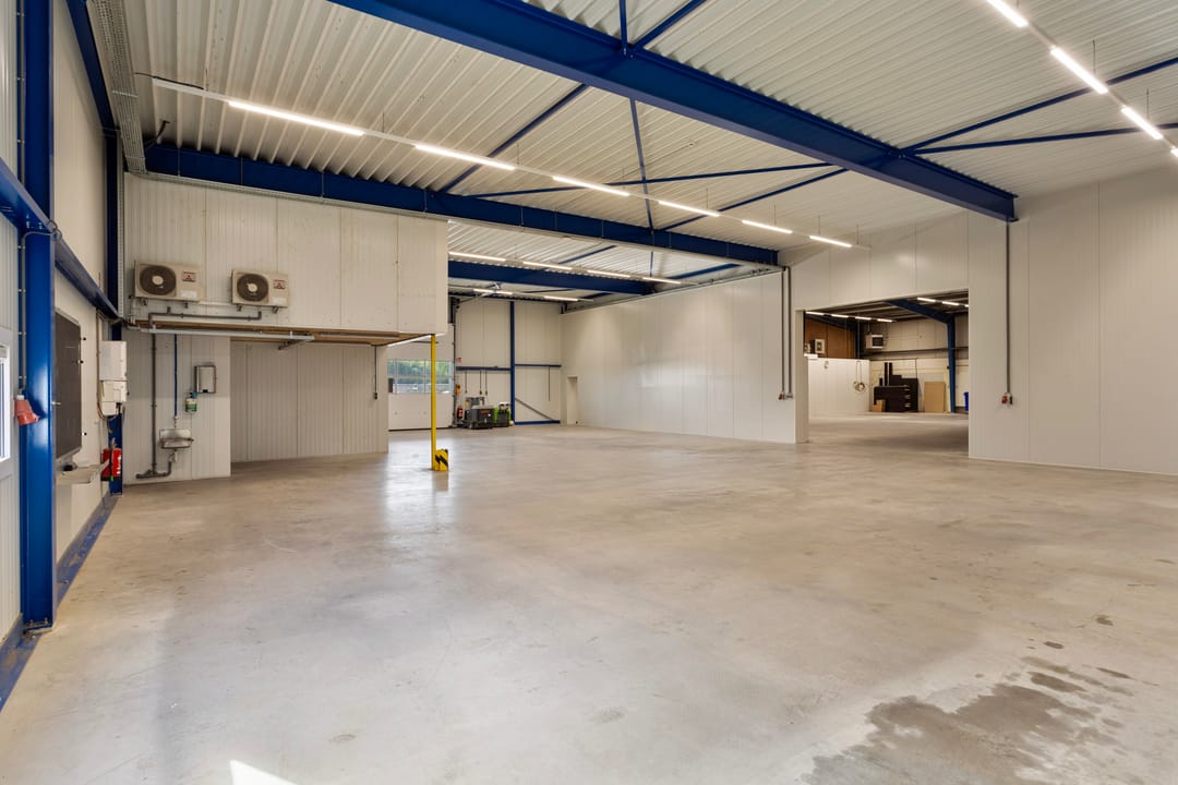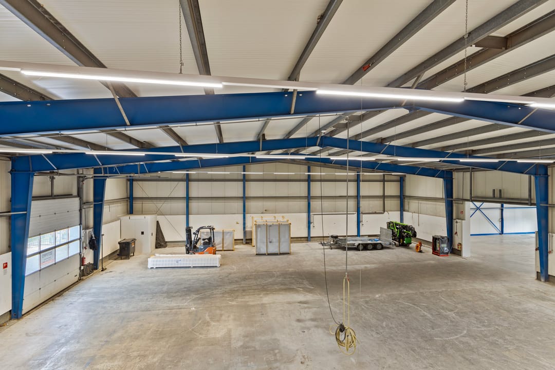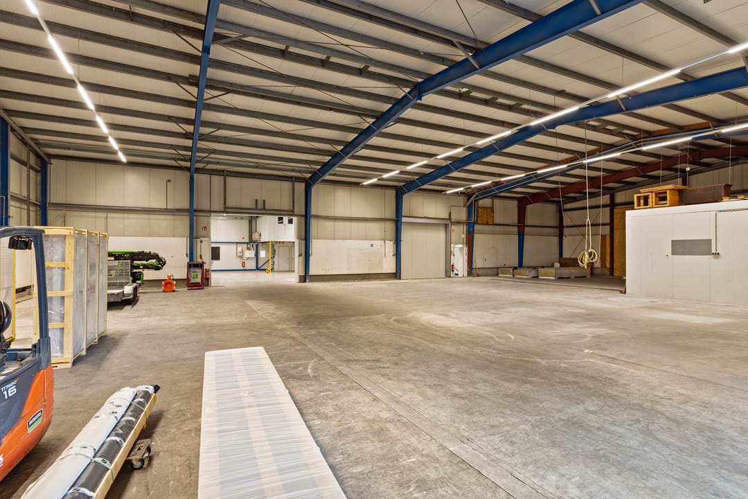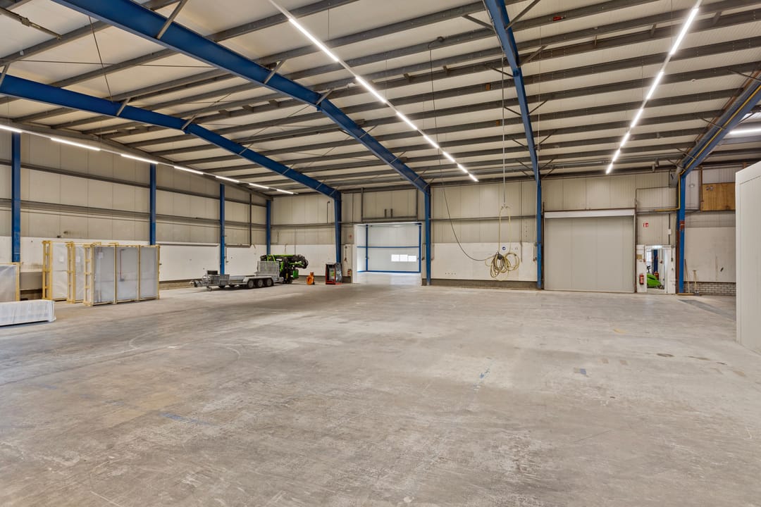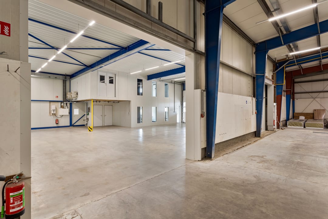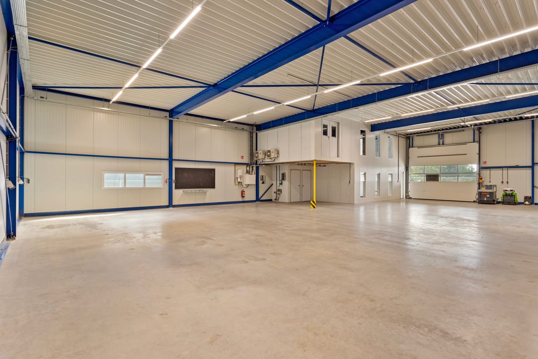 Receptie. Kantoorruimte. Kantine. Pantry. Toiletgroepen. Opslagruimte. De bedrijfshal is opgedeeld in twee ruimtes en via overheaddeuren zijn deze met elkaar verbonden. De gehele bedrijfshal wordt verlicht door middel van LED-verlichting. Aparte toiletgroep. Kantoorruimte. Kantine met modern keukenblok. Bar. Opslagruimte.
