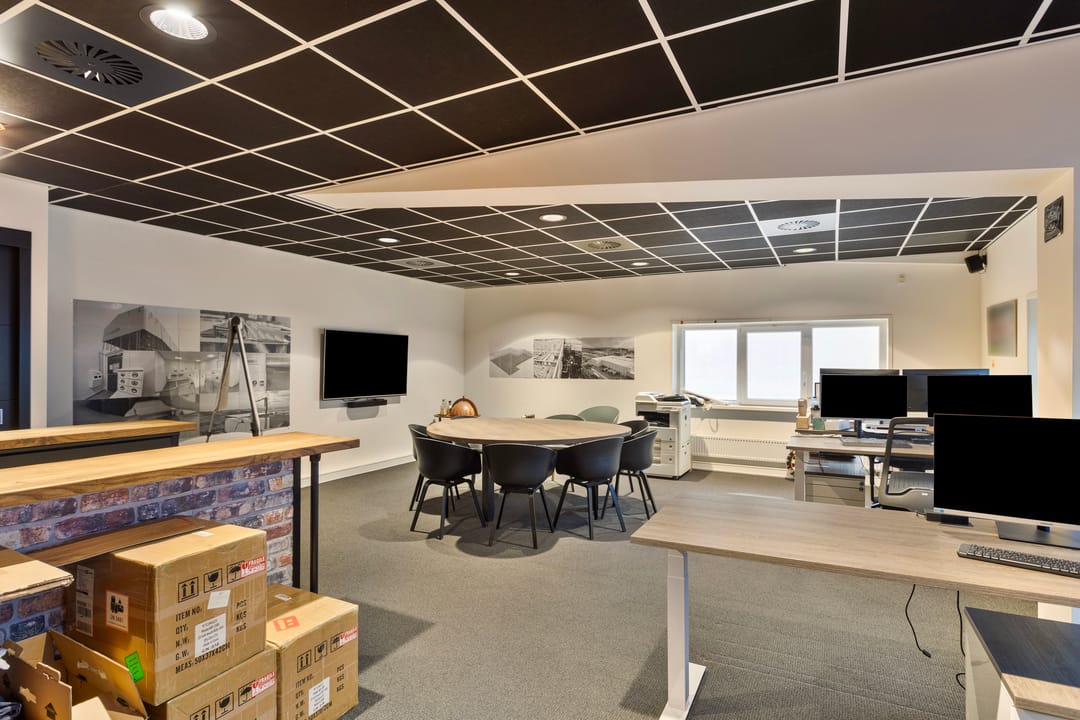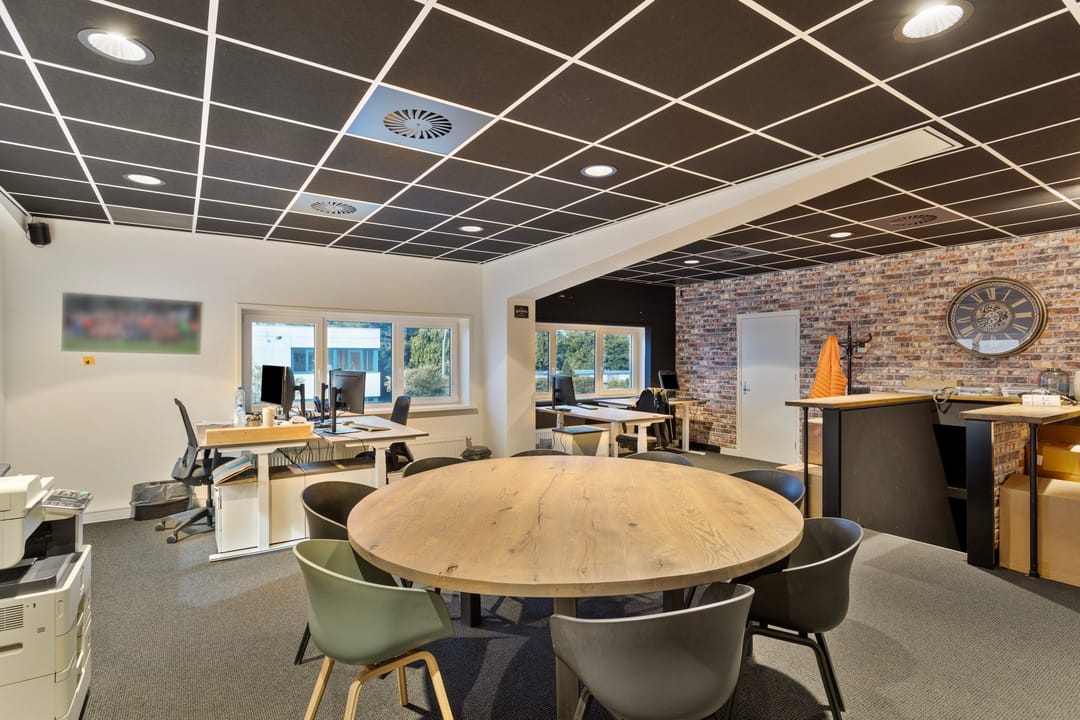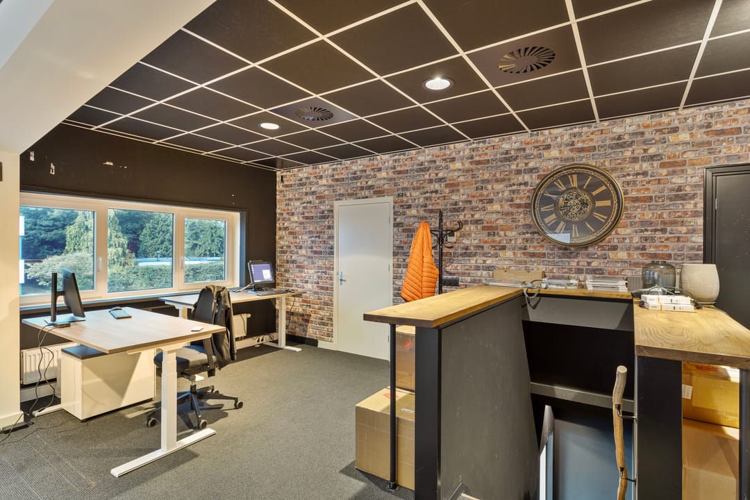 - Verwarming in de bedrijfshal door middel van gasheaters en verwarming in het kantoorgedeelte door middel van airco's of vloerverwarming.