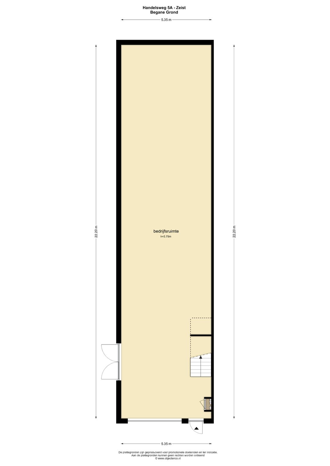 - Een bedrijfsruimte op de begane grond met in het achterste gedeelte stellingen;