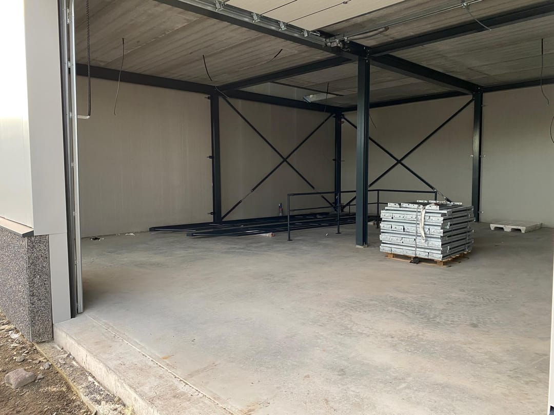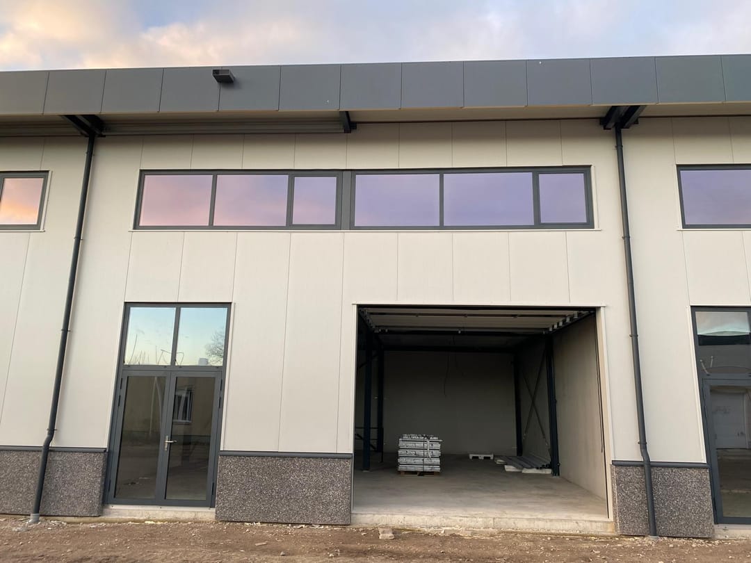 De units worden voorzien van een elektrisch bedienbare, sectionaal deur (4,25 x 3,5 meter), entree met dubbele deuren en ramen op de verdieping.