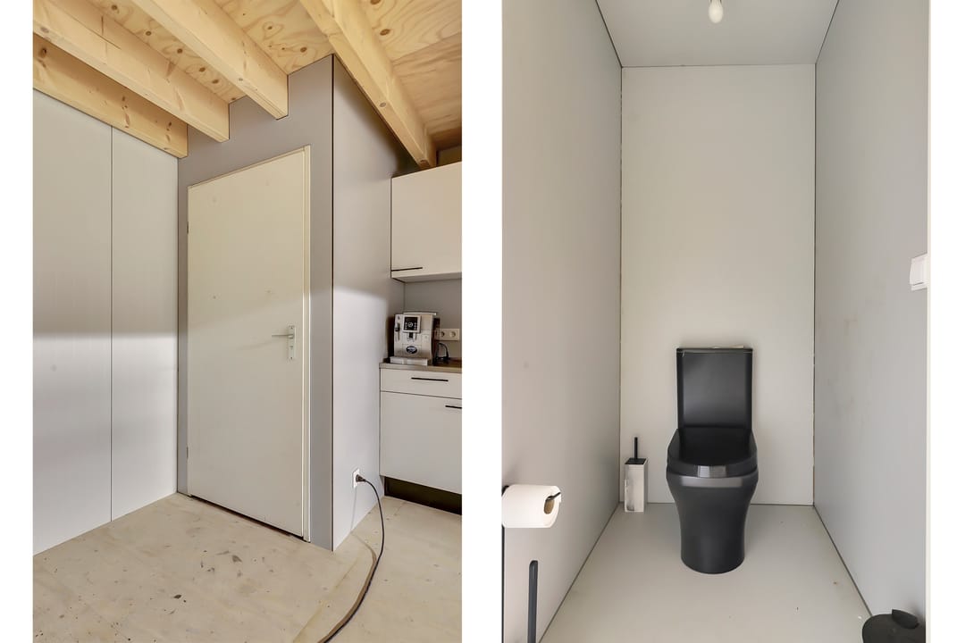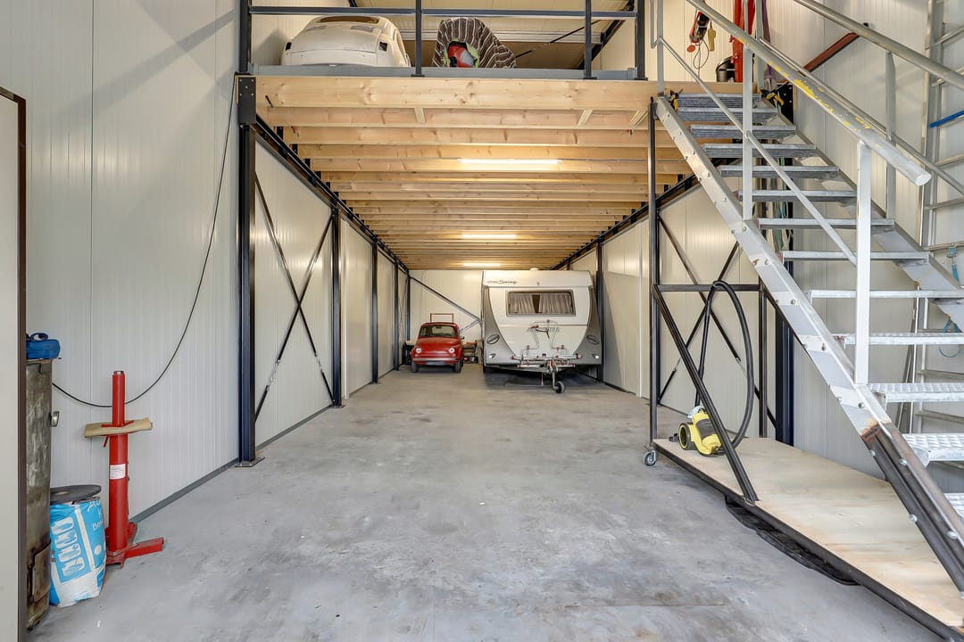 - De unit is voorzien van een tweetal verdieping's vloeren welke bereikbaar zijn middels een vaste trap.. De verdieping is netjes afgewerkt middels aftimmering, keukenblok keuken en toilet.