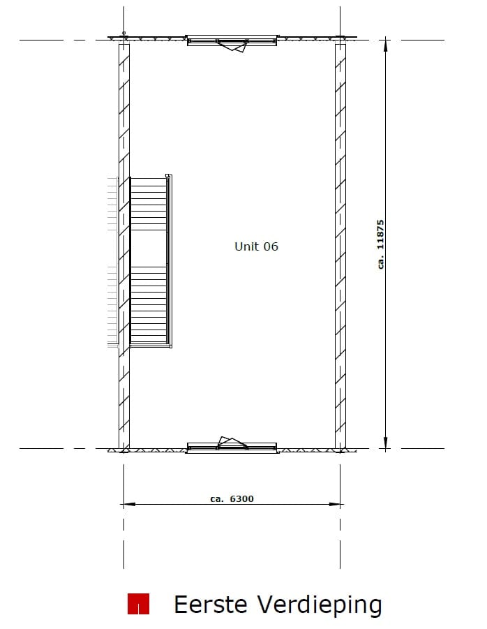 - eerste verdieping : 76,4 m² bedrijfsruimte, welke thans is ingericht als kantoor.