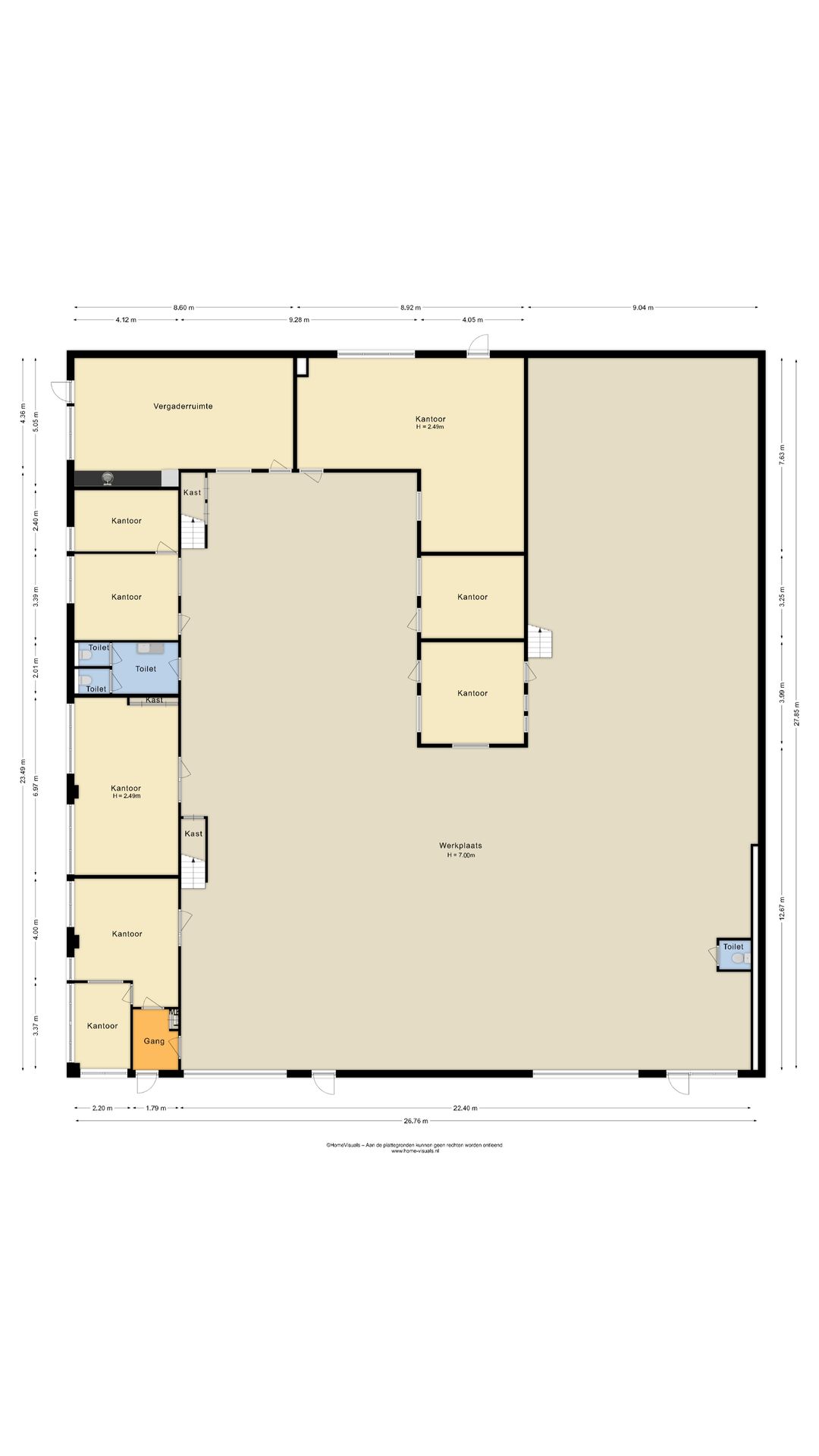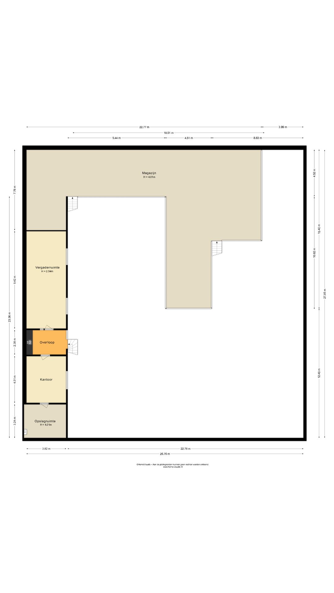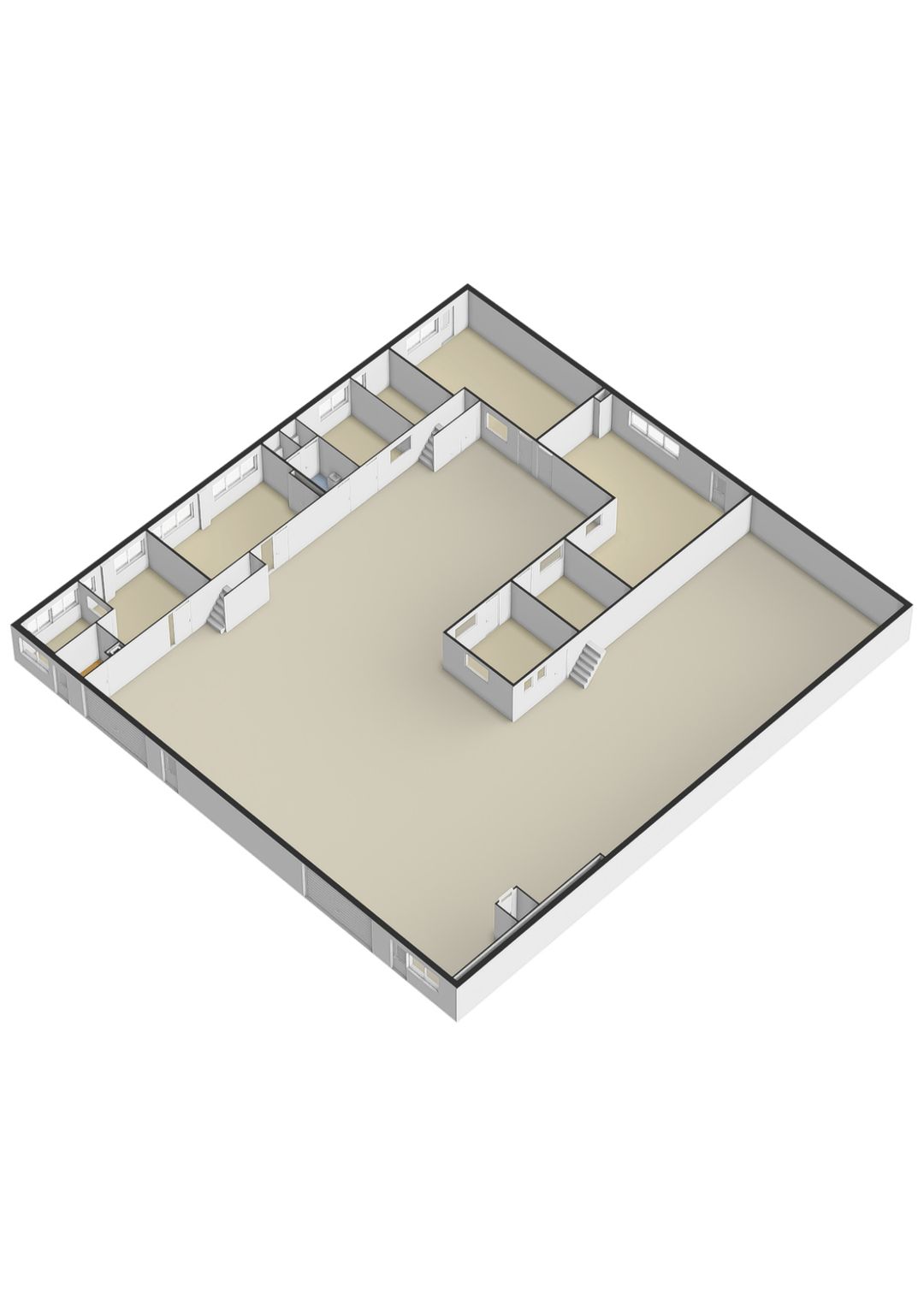 - Grote kantoorruimte met vergaderruimte (± 75 m²), magazijn (± 188 m²)