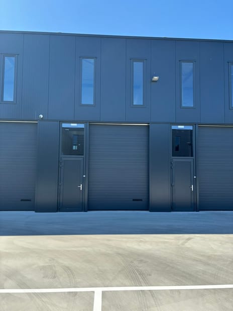 Voor een goede logistieke functie is de unit voorzien van een electrisch bedienbare roldeur. Daarnaast is op de verdieping een kantoor en pantry gecreëerd. Door de grote raampartijen valt er veel licht naar binnen en dat geeft de hal optisch gezien meer ruimte.