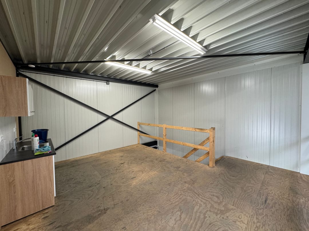 - Rooflights, overhead doors, three-phase electric power, concrete floor, pantry, built-in fittings and windows can be opened