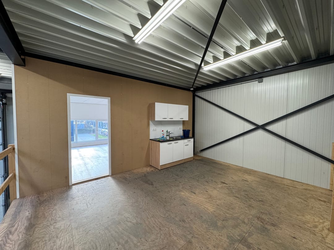 De begane grond beschikt over ca. 100 m². De bedrijfsunit heeft deels een vrije hoogte van 6 meter met een elektrisch bediende overheaddeur en separate loopdeur. Daarnaast beschikt de unit over een ca. 50 m² verdiepingsvloer. De bedrijfsunit beschikt over elektrapunten, verlichtingsarmaturen en een eigen meterkast.