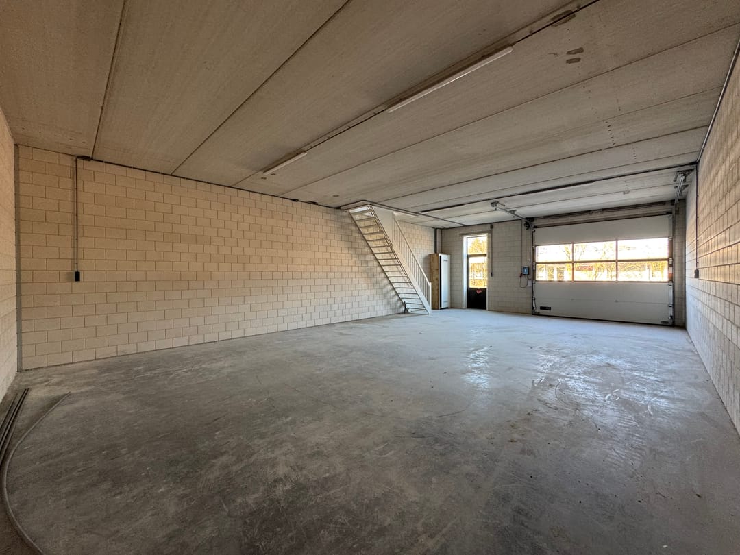 De unit beschikt over een totale oppervlakte van circa 212 m², verdeeld over circa 106 m² op de begane grond en circa 106 m² op de verdieping. Het object beschikt over een elektrische overheaddeur, meterkast met nutsaansluitingen alsmede een trap naar de verdieping op de begane grond. De verdieping is voorzien van een betonnen verdiepingsvloer en een ruim raamkozijn.
