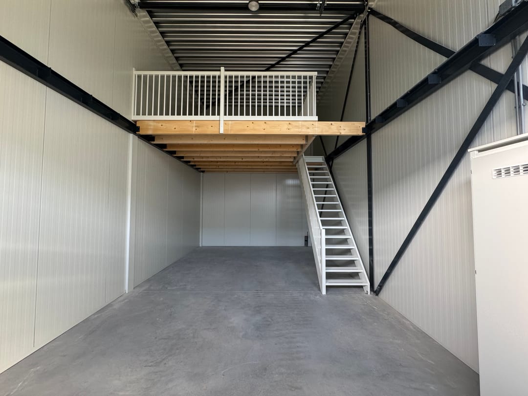 De begane grond beschikt over ca. 50 m² groot, zijnde 5 meter breed en 10 meter diep. De verdieping beschikt over ca. 25 m², zijnde 5 meter breed en 5 meter diep. De bedrijfsunit heeft deels een vrije hoogte van ca. 6 meter met een handbediende bediende overheaddeur en separate loopdeur. De bedrijfsunit beschikt over een betonnen vloer, enkele elektrapunten, verlichtingsarmaturen en een eigen meterkast met nutsaansluitingen.