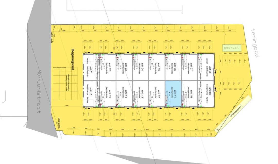 De unit bevindt zich in een hoogwaardig en representatief nieuwbouw bedrijfsverzamelge-bouw, bestaande uit 16 bedrijfsunits van ca. 212 m² BVO verdeeld over twee verdiepingen.