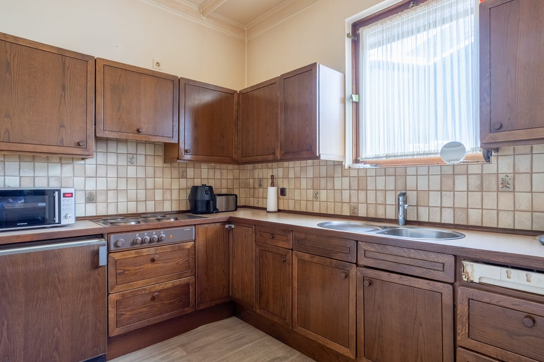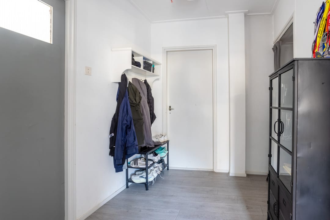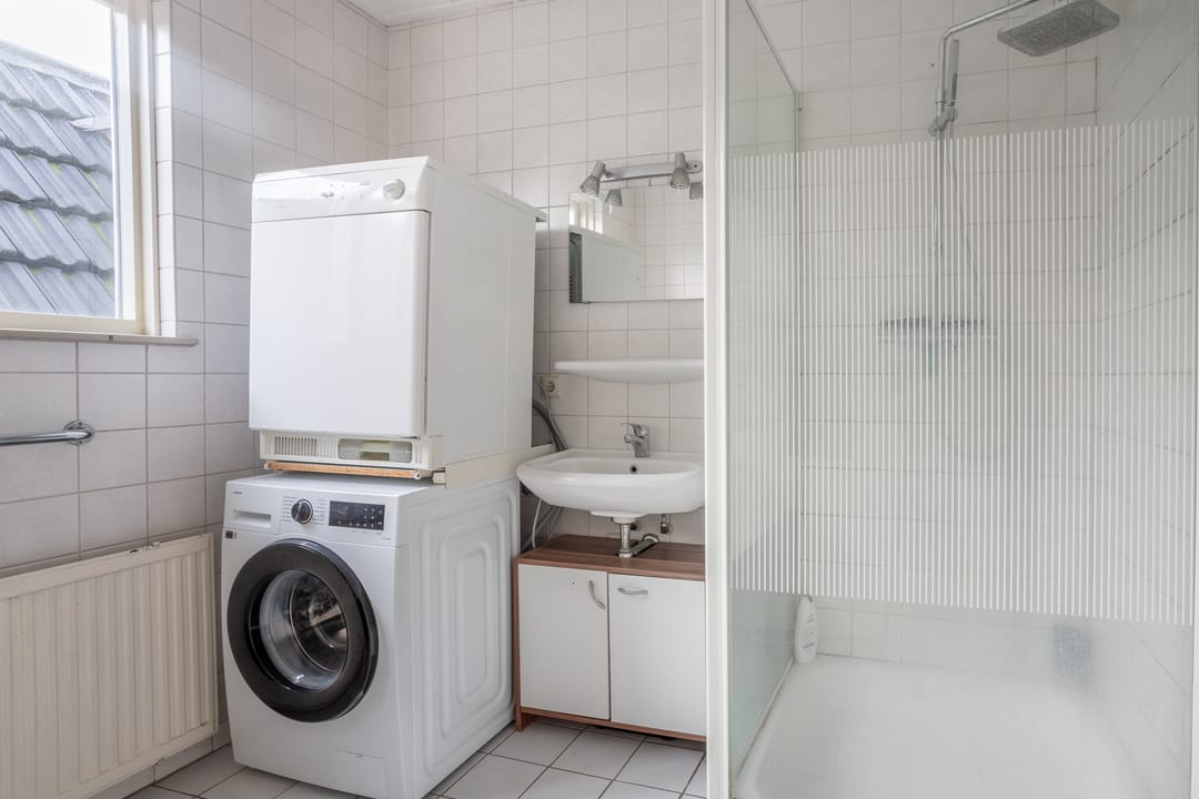 Hal/entree, kelder, toilet, garderobe, woonkamer, open keuken, 2 slaapkamers, badkamer (inloopdouche, wastafel en 2e toilet) en bijkeuken/berging.