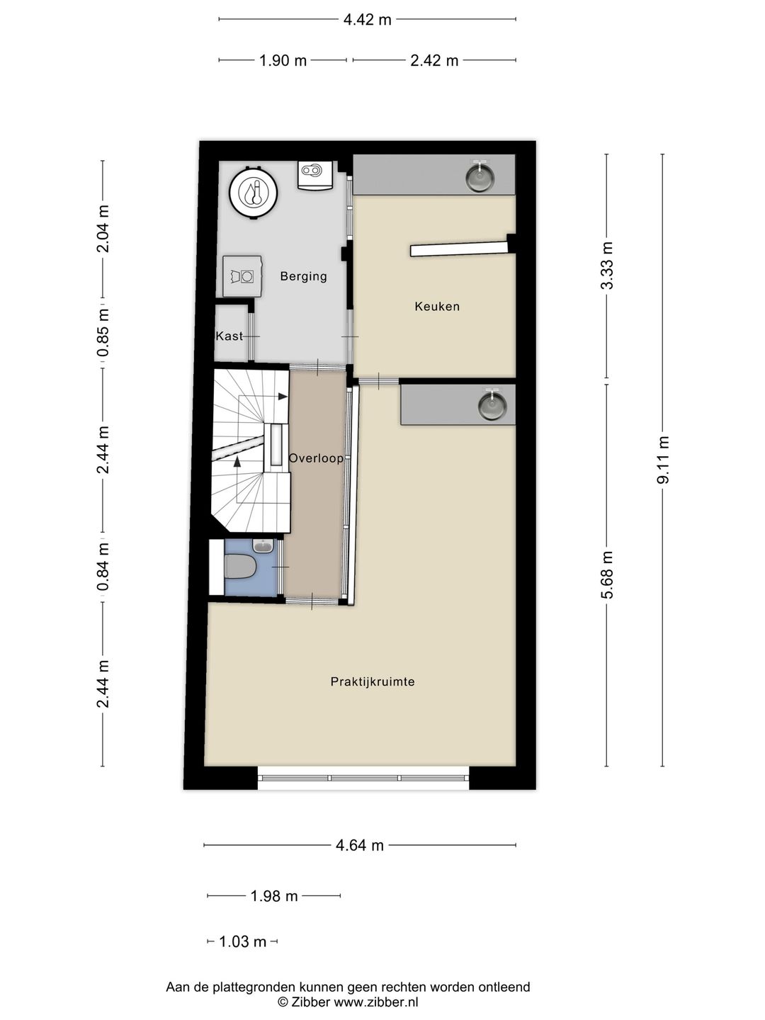 GFA practice space, first floor: 49.9 m²