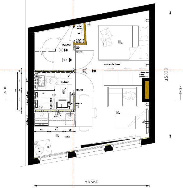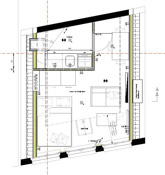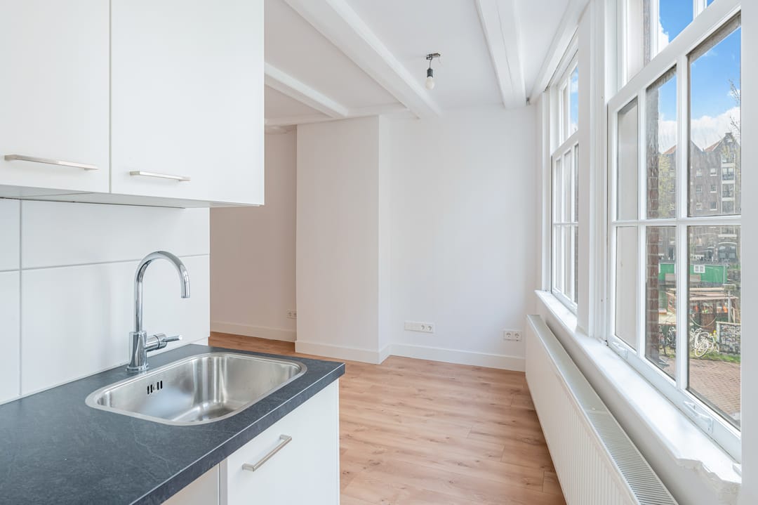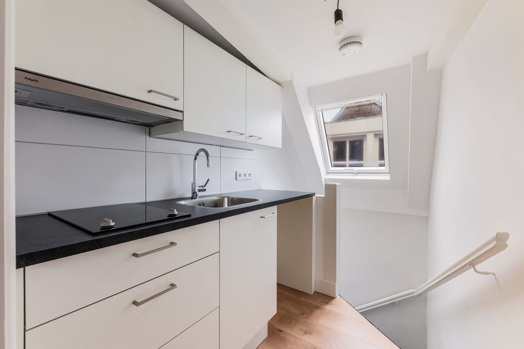 - Derde verdieping, lichte woonruimte met keuken en badkamer voorzien van douche en wc.