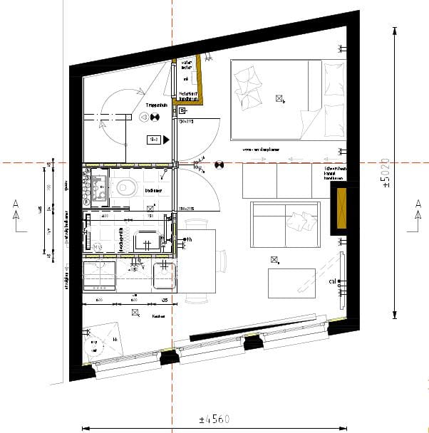 - Begane grond, appartement met souterrain en eigen entree een badkamer met wc, wastafel en douche, in het souterrain bevindt zich de slaapkamer.