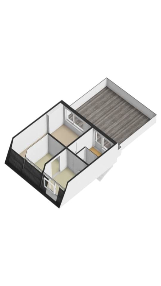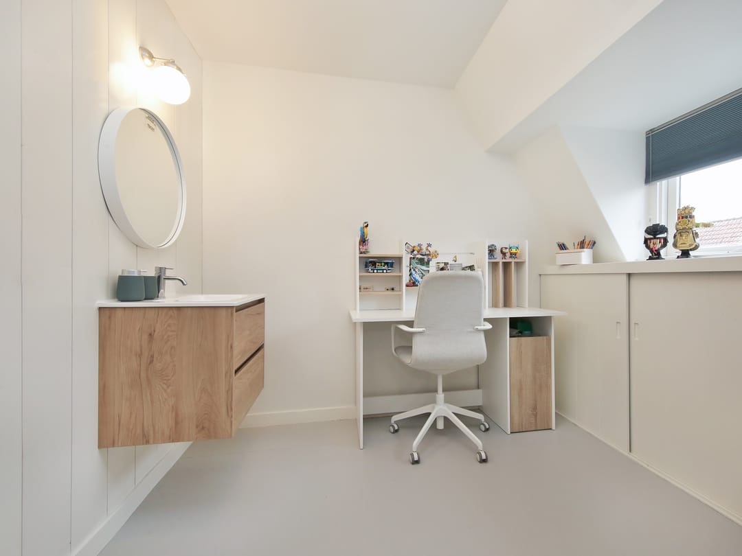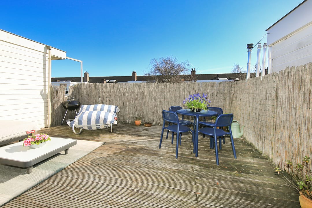 The third floor is accessible via the landing. Here, there are two more bedrooms, as well as a separate room containing the central heating system and washing machine connection. From the landing, you have access to the spacious roof terrace. Additionally, there is the possibility to extend the roof structure.