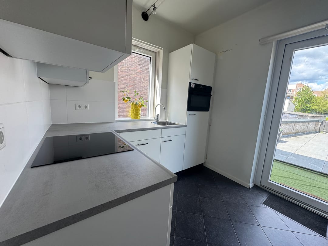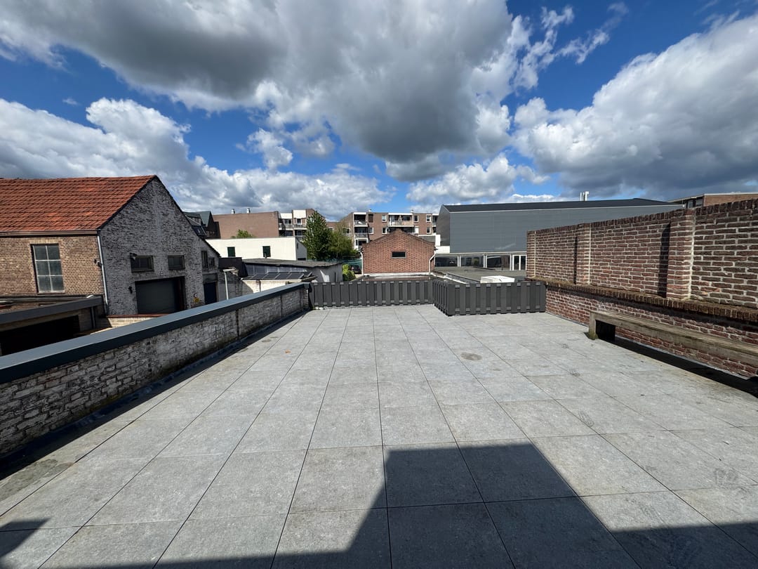 - 1e verdieping : overloop, keuken, toilet, woonkamer, 2 slaapkamers en riant dakterras van ca. 60 m².