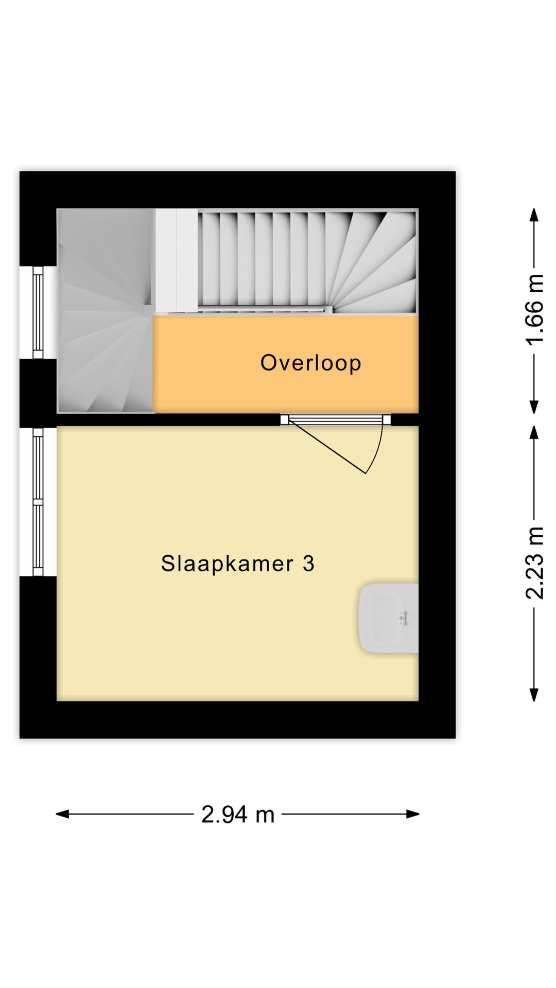 Ca. 12 m² woonruimte gelegen op de 2e verdieping