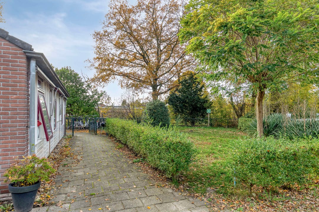 Volledig vrij gelegen op een ruim perceel eigen grond ter grootte van in totaal circa 2.545 m². Het terrein is rondom voorzien van klinkerbestrating en ingericht als tuin.