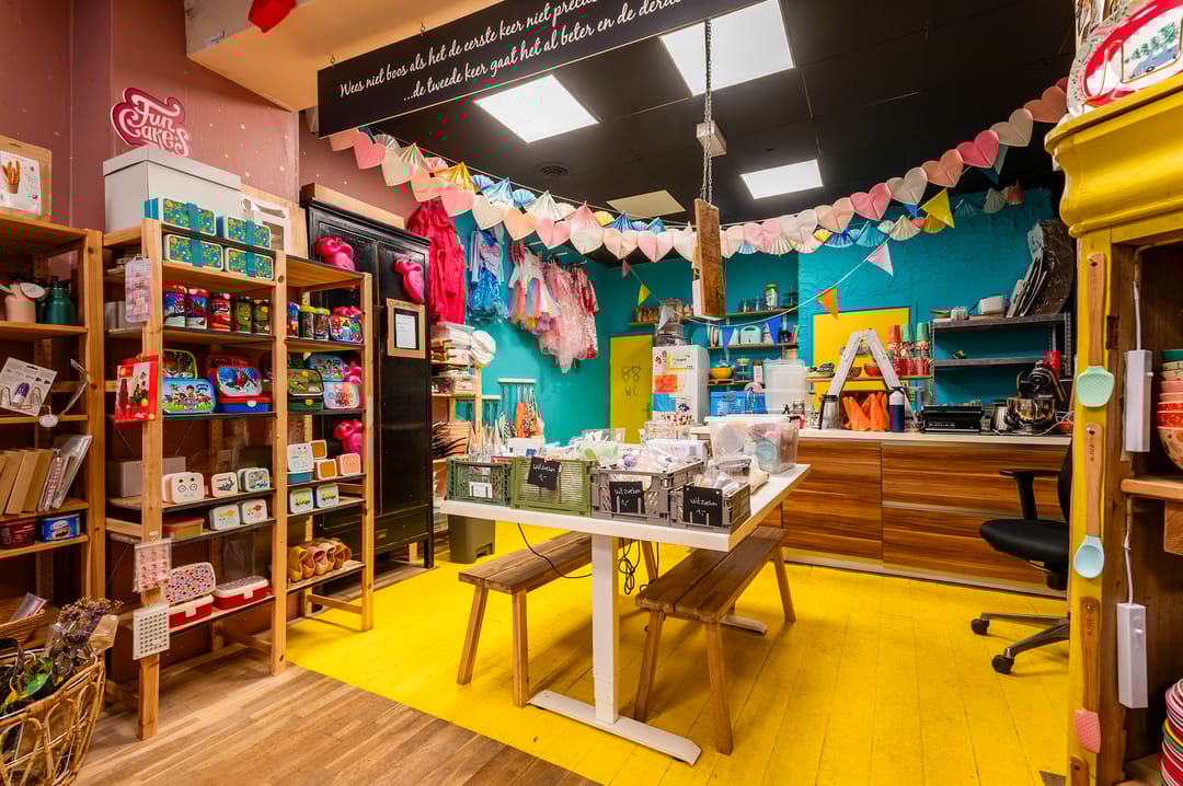 Onder het voorste gedeelte van de winkel is een kelder gelegen welke middels een luik is te bereiken.