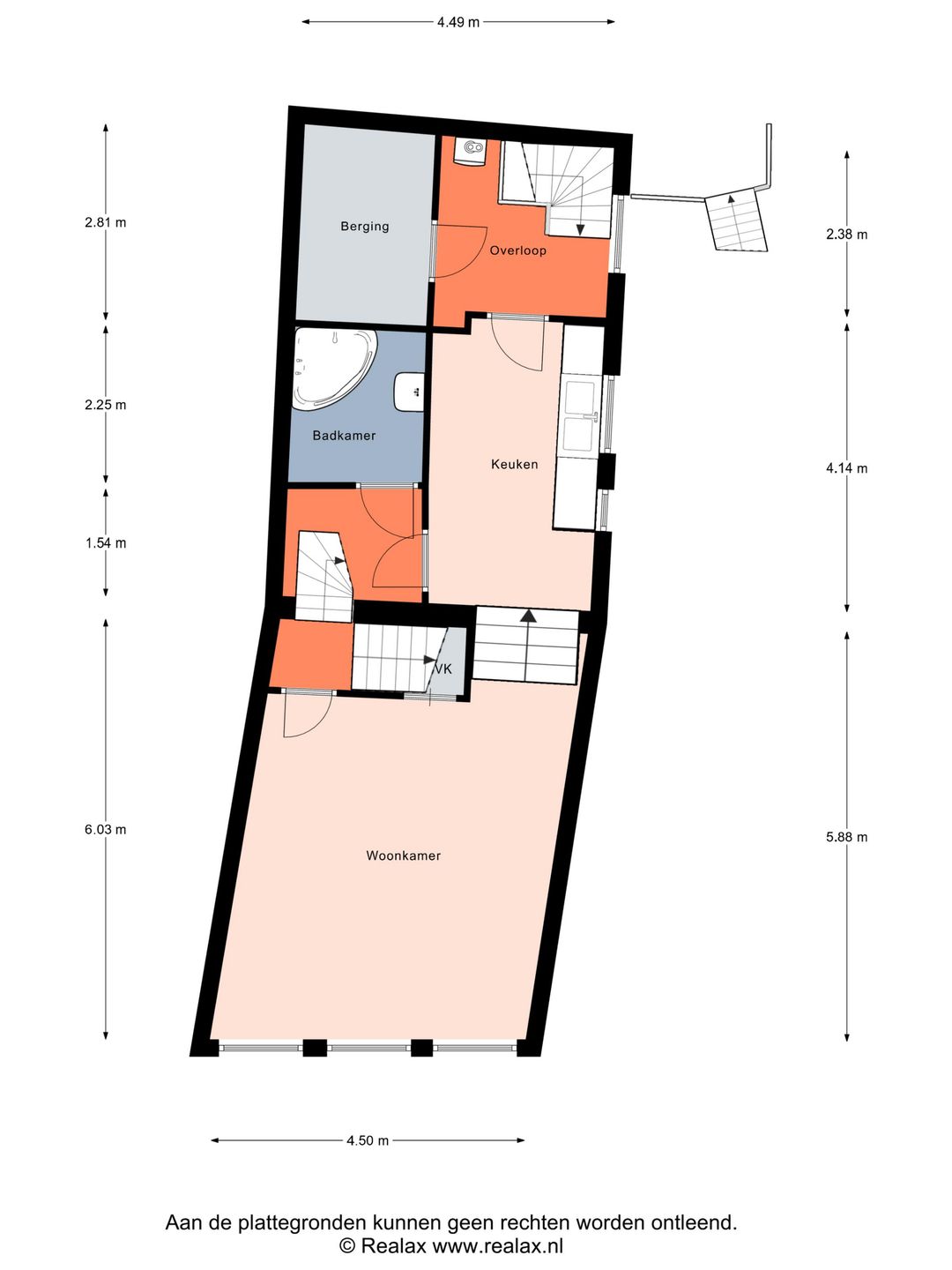 Woning via naast gelegen steeg voorzien van eigen entree.