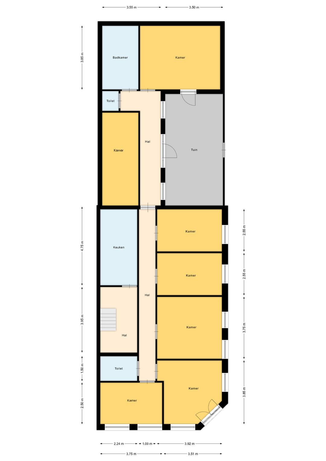 Het object omvat 12 modern ingerichte kamers, verdeeld over de begane grond en eerste verdieping. Dankzij een grondige renovatie in 2025 verkeert het object in een uitstekende staat. Tijdens de renovatie zijn alle binnenruimtes grondig aangepakt: de wanden en plafonds zijn gesausd, het gehele object is voorzien van een nieuwe PVC-vloer en alle voorzieningen zijn vernieuwd. De keuken is volledig vervangen en uitgerust met moderne apparatuur, terwijl ook de badkamers en toiletruimtes compleet zijn gerenoveerd.