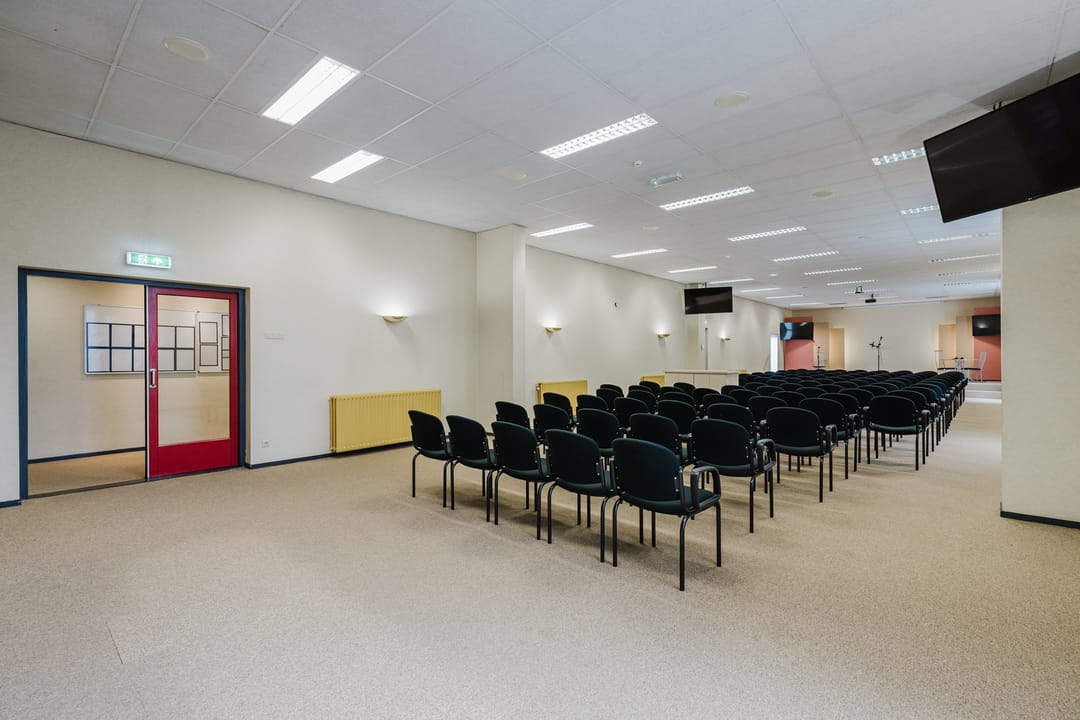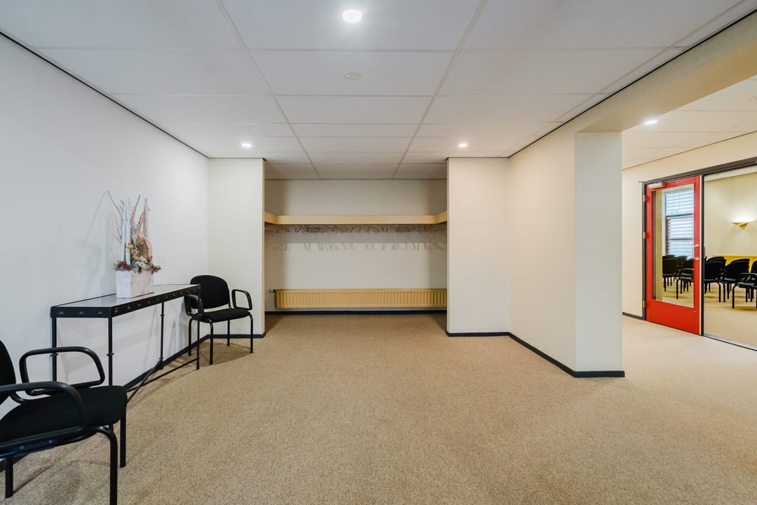 De achterbouw bestaat uit één bouwlaag van ca. 320 m², momenteel in gebruik als vergader- en zaalruimte. De bestaande indeling, met een grote zaal, spoelkeuken, toiletgroepen en diverse opbergruimtes, biedt volop mogelijkheden voor transformatie naar meerdere verhuurbare units.