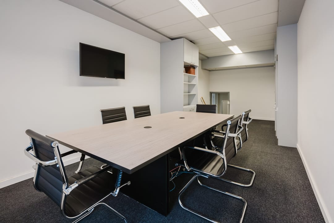 Het voorgebouw biedt op de begane grond ca. 68 m² kantoor- en vergaderruimte. De bovenverdiepingen, met een totale oppervlakte van ca. 93 m², zijn ingericht als bedrijfswoning.