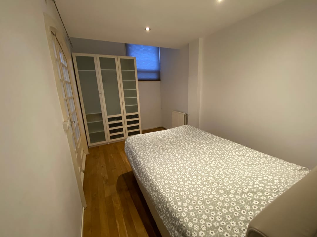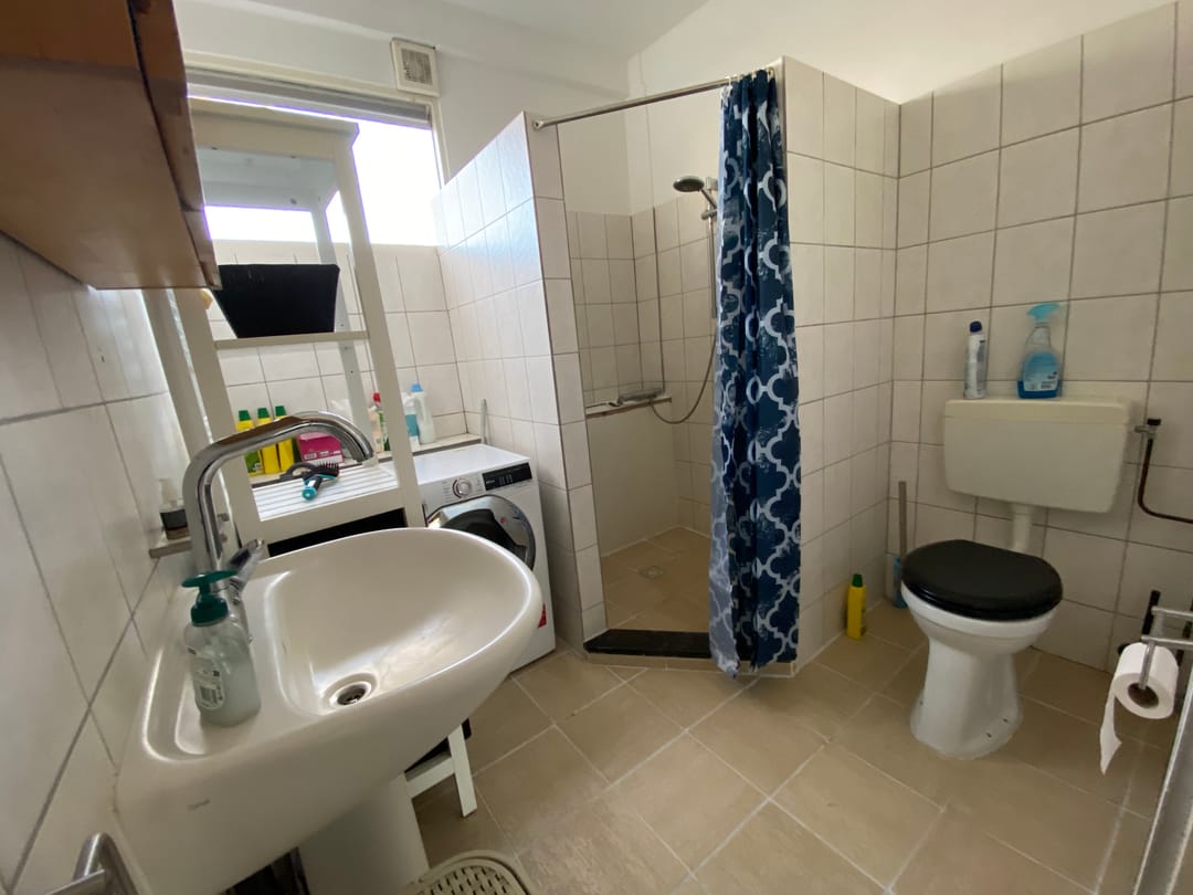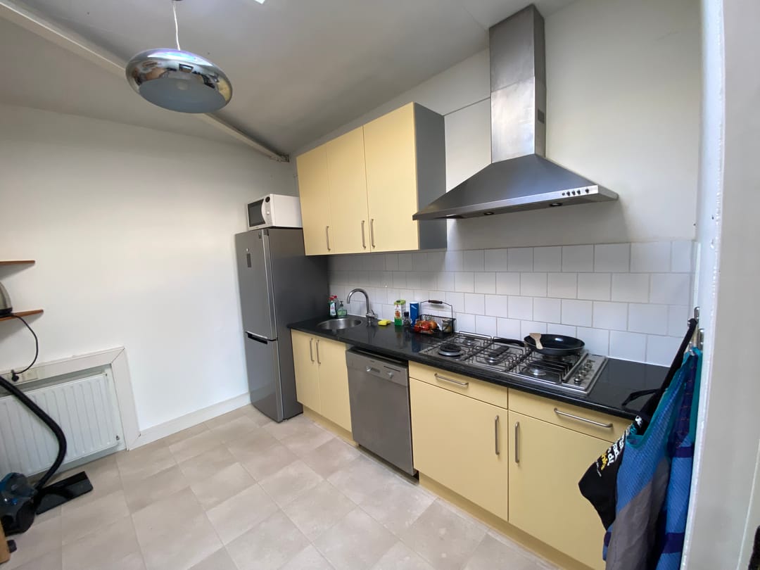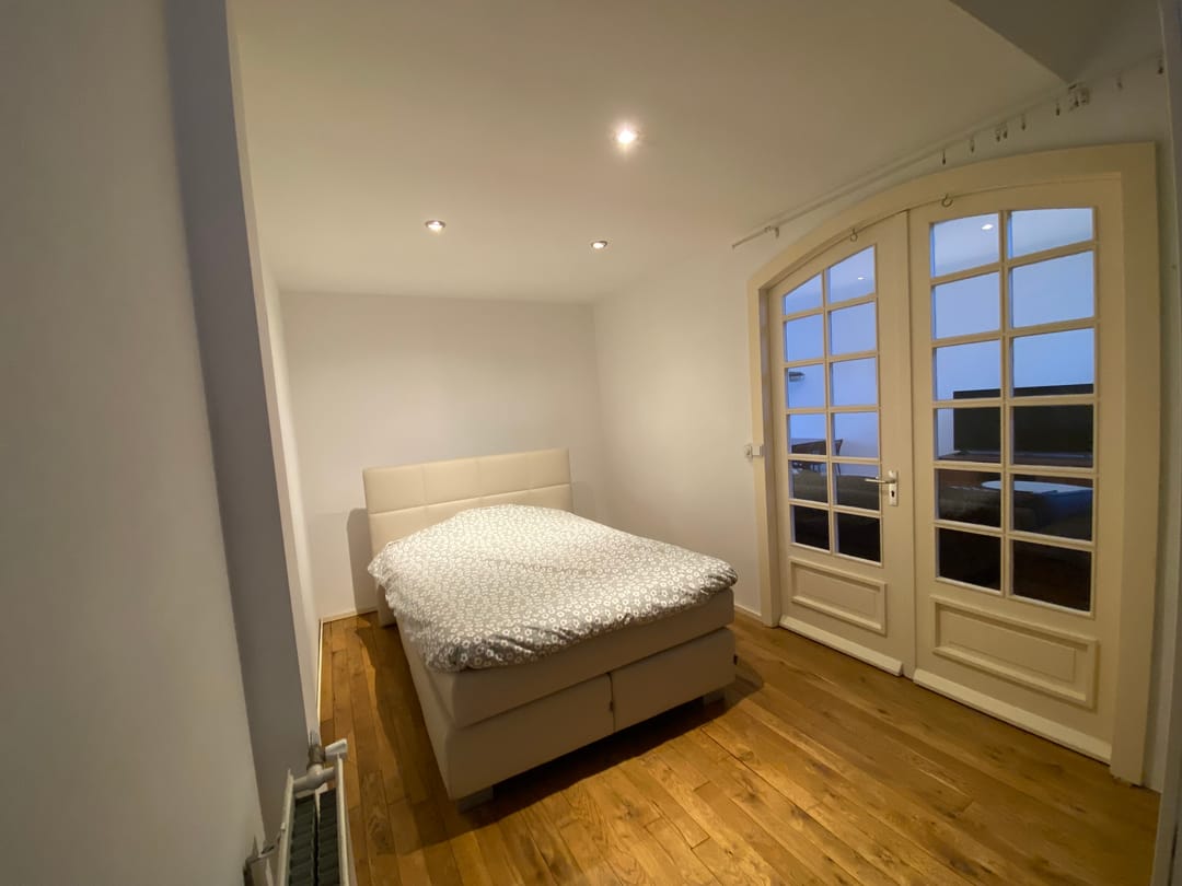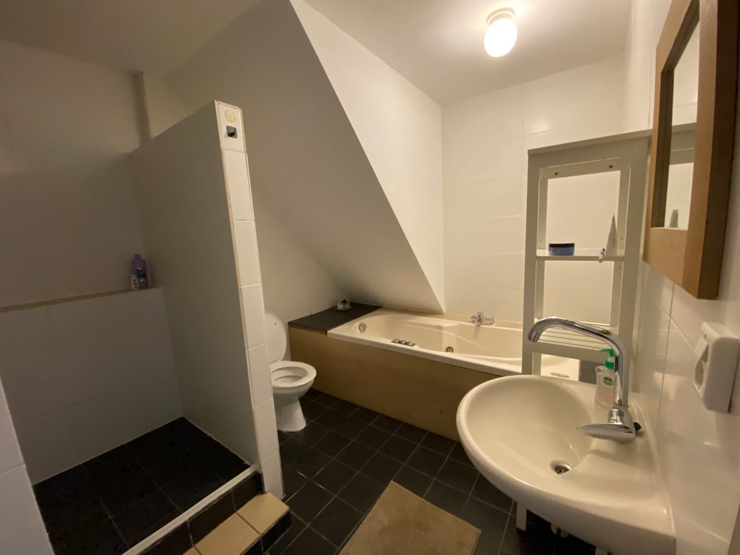 Op de 1e etage een 2-kamer appartement met woonkamer van 29m², keuken van 10m², slaapkamer van 13m² en badkamer met douche, toilet, wastafel en plaats voor wasmachine.