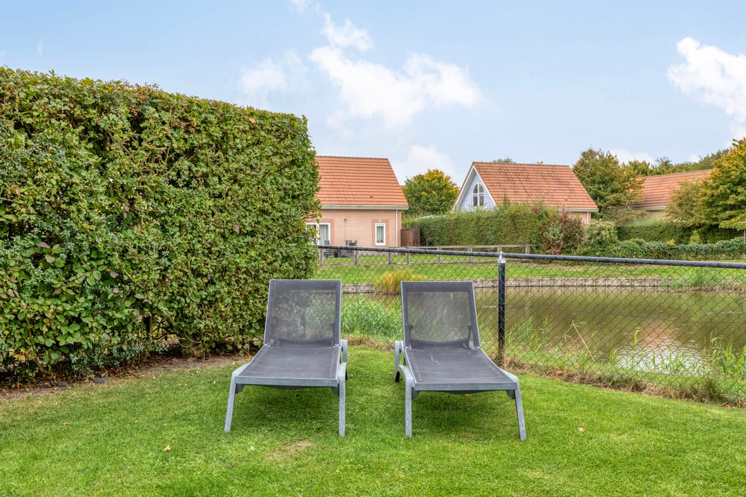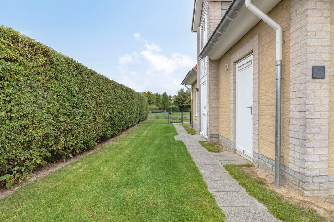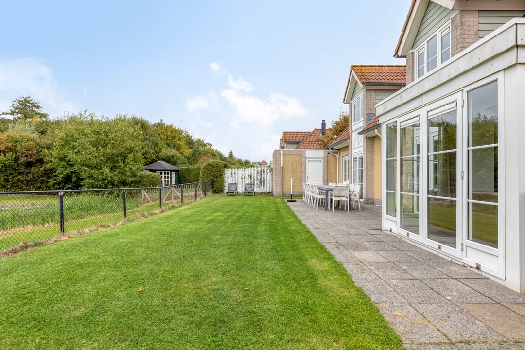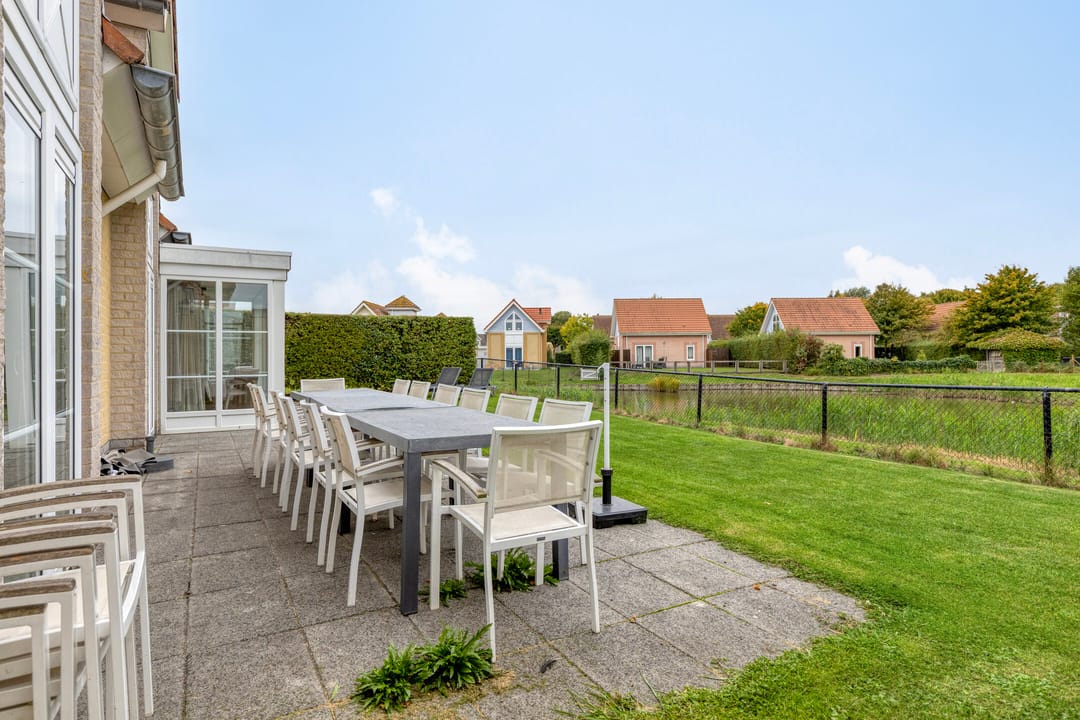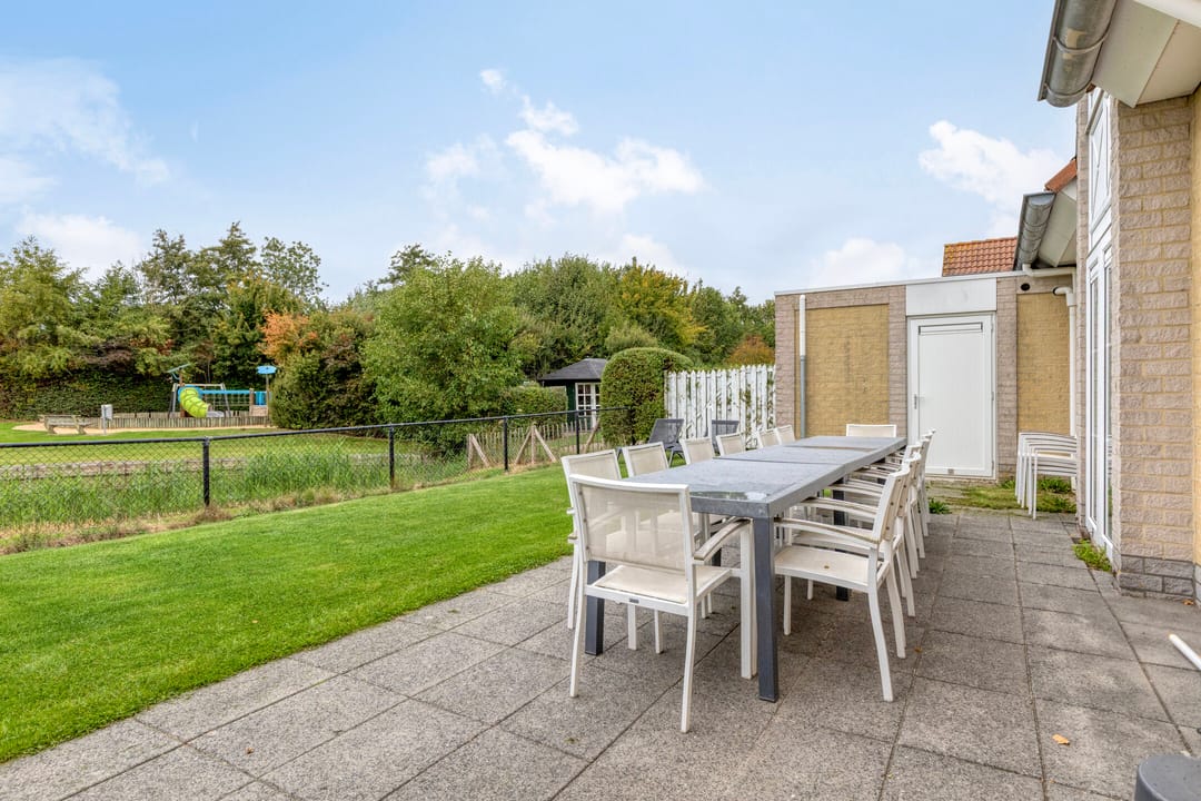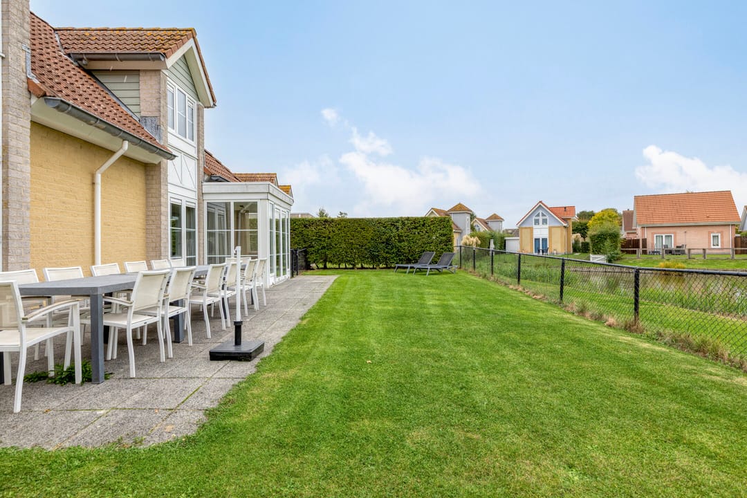 De royale, omsloten tuin van de woning loopt aan de achterzijde over de volle breedte en grenst tevens aan een binnenwater, waar regelmatig eendjes voorbij zwemmen. Dankzij de beschutte ligging kunnen kinderen en huisdieren veilig spelen, terwijl je geniet van de rust en het uitzicht. De praktisch en doordachte XXL-woning beschikt over een aangebouwde garage, ideaal voor het opbergen van fietsen, strandspullen en tuinmeubilair. Parkeren is mogelijk op eigen terrein.