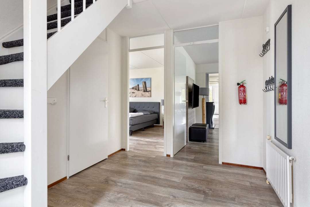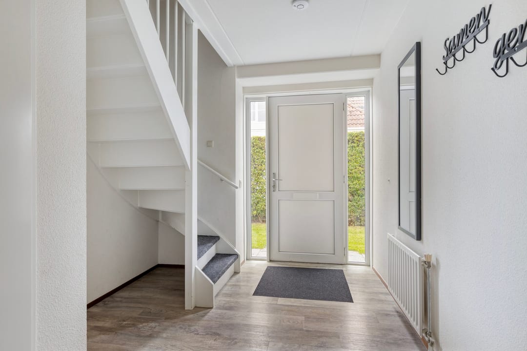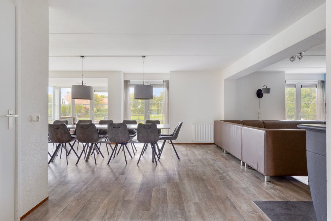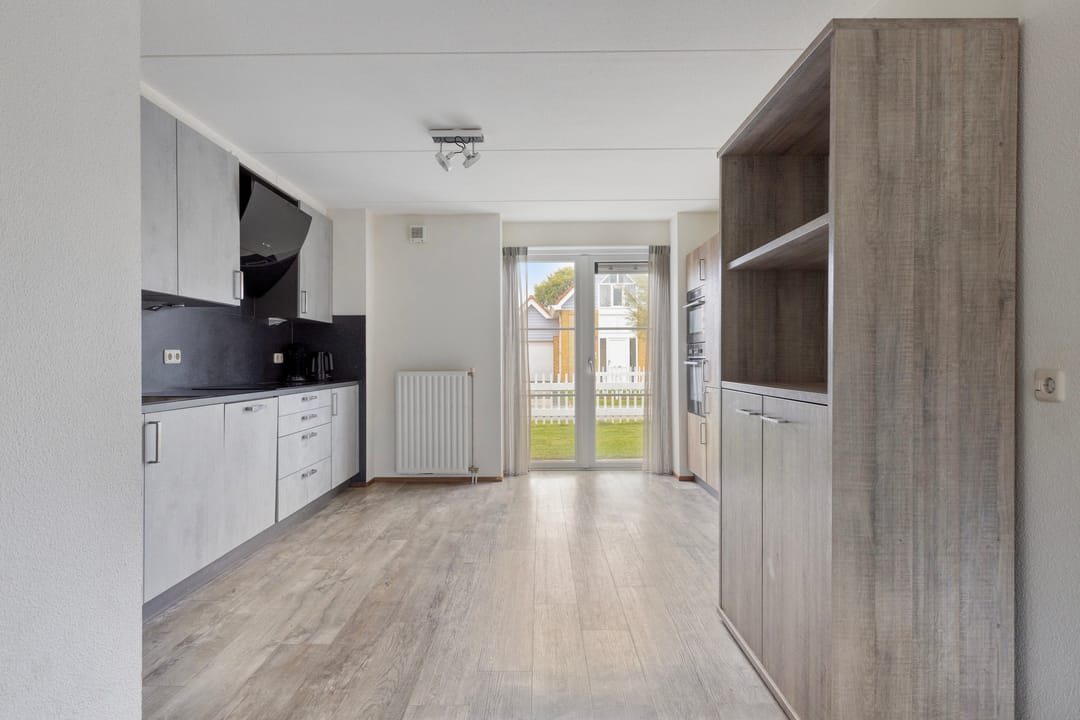 Dankzij de vele tuindeuren is er een fijne verbinding tussen binnen en buiten en heb je direct toegang tot de achtertuin met terras. Ook vanuit de keuken is er een directe doorgang naar de tuin.