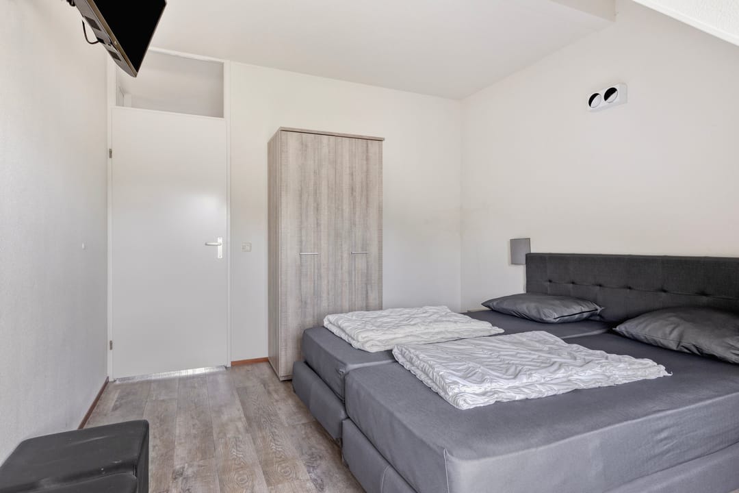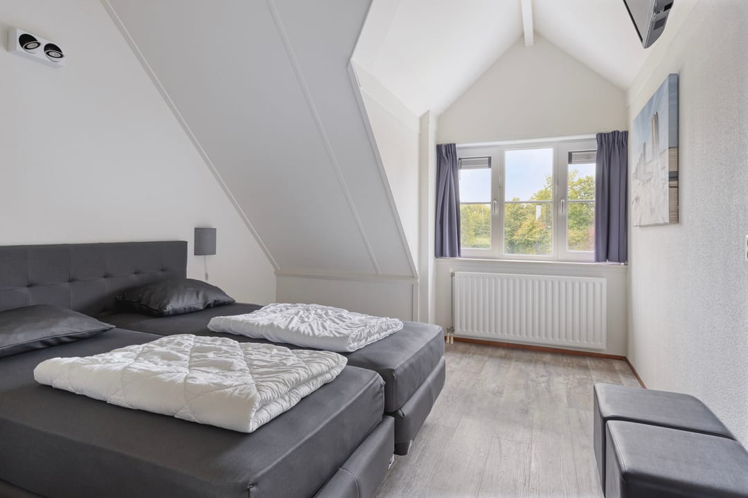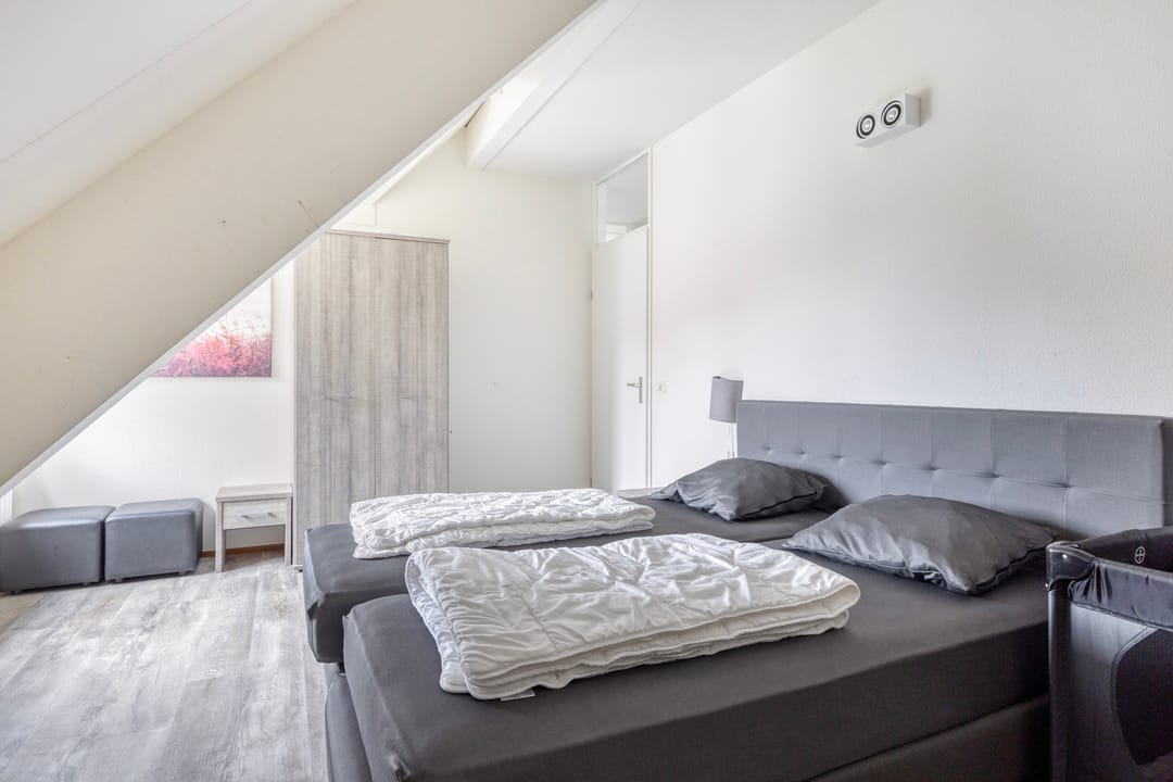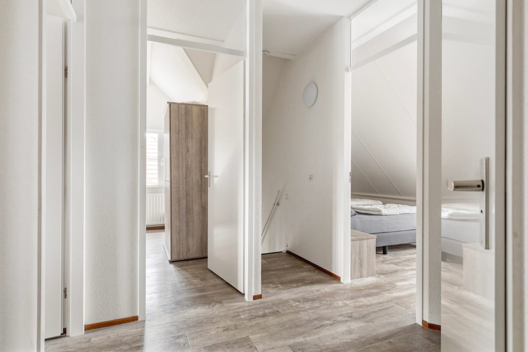 Via de twee aparte trapopgangen bereik je de ruime overloop van de eerste verdieping. Hier bevinden zich zes comfortabele slaapkamers, elk met voldoende ruimte voor meerdere slaapplaatsen.