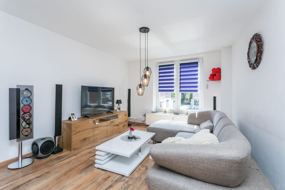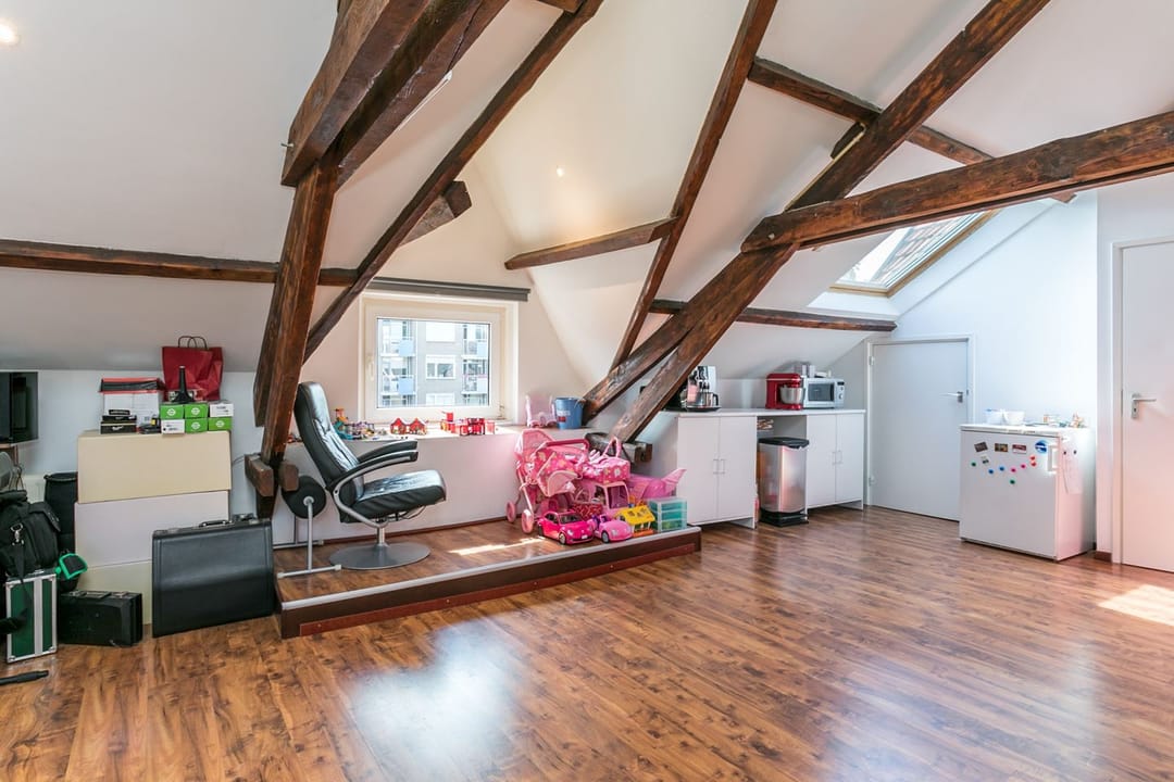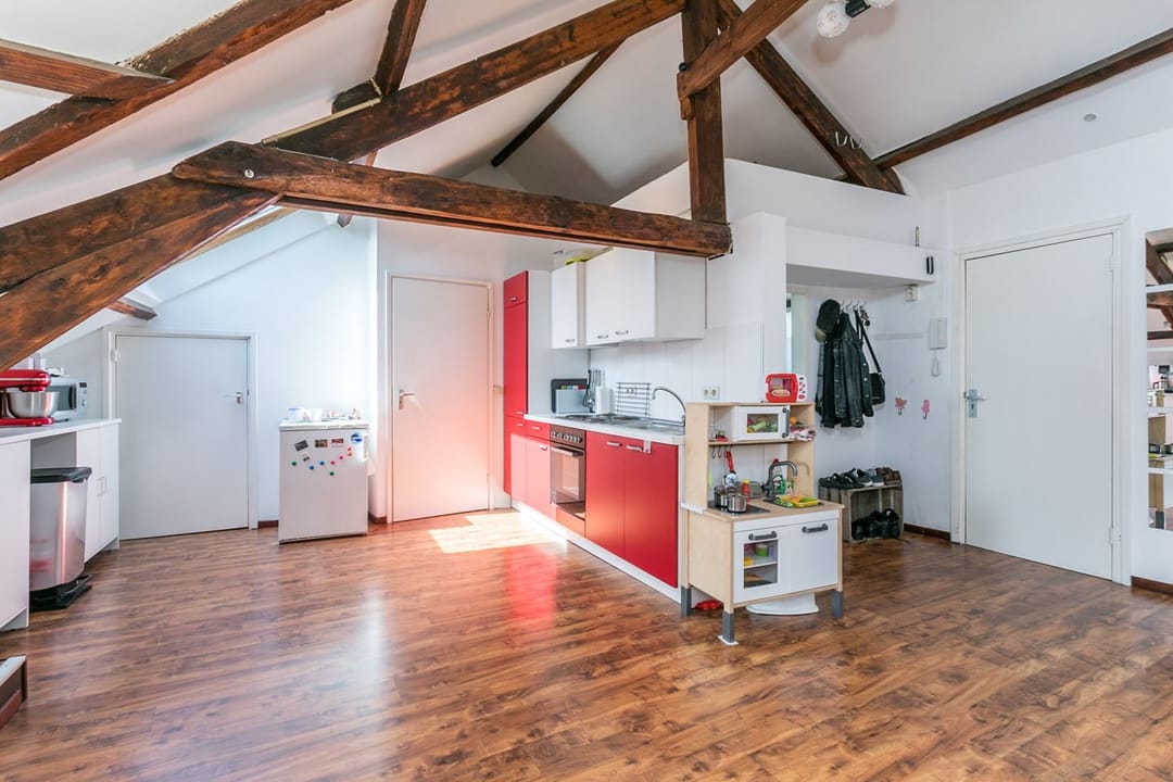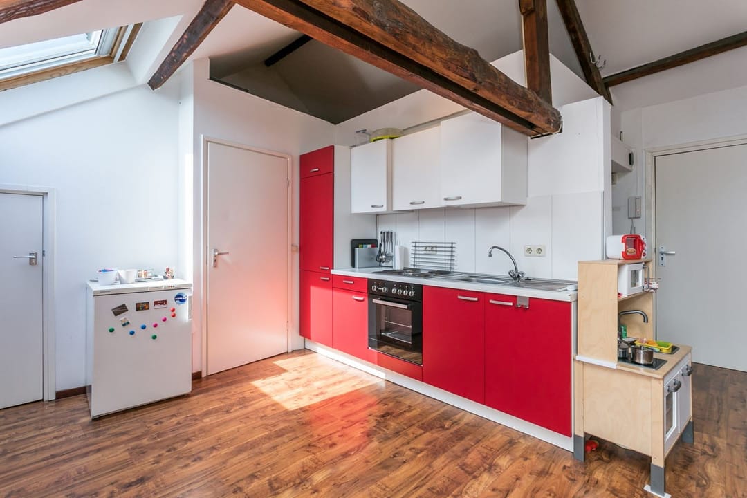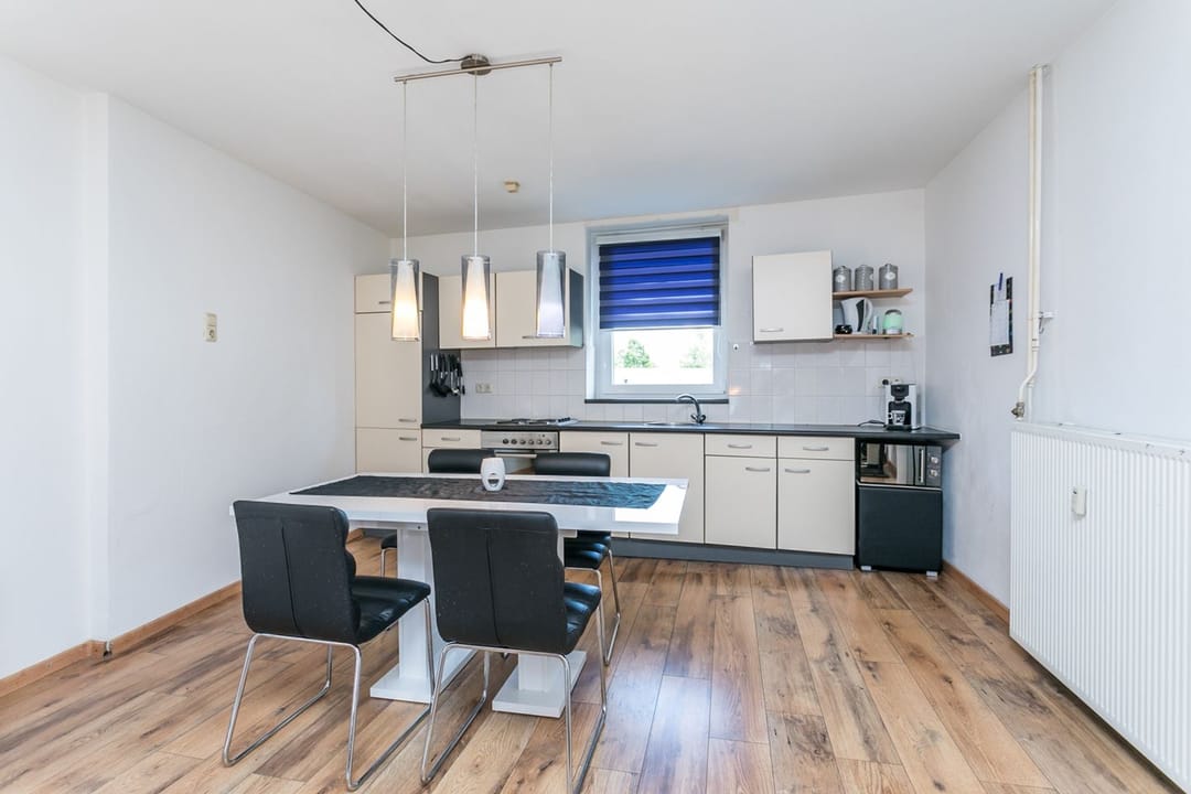 Zeer ruime en sfeervolle woonkamer met open keuken. De woonkamer is voorzien van een laminaatvloer. De gezamenlijke oppervlakte van de woonkamer en keuken bedraagt maat liefst ca. 54 m² . De keuken is voorzien van een keukeninstallatie met een rechte opstelling inclusief de navolgende apparatuur: elektrische kookplaat en afzuigkap.