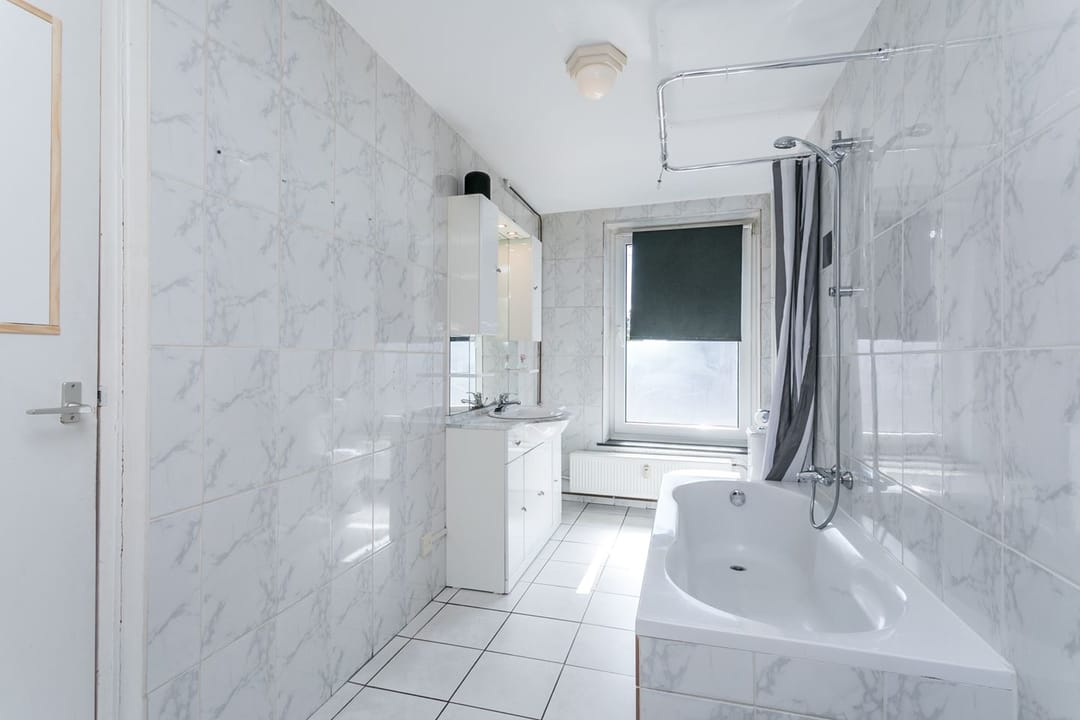Vanuit een van de slaapkamers is een royaal dakterras te bereiken. Dit dakterras beschikt over een uitstekende bezonning. De geheel betegelde badkamer is voorzien van een ligbad, vaste wastafel en toilet.