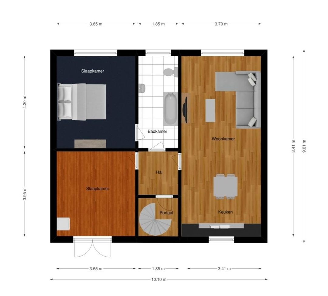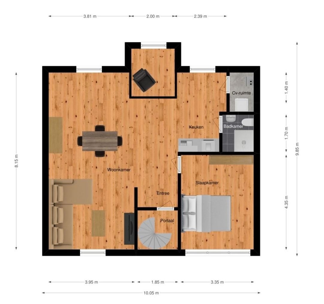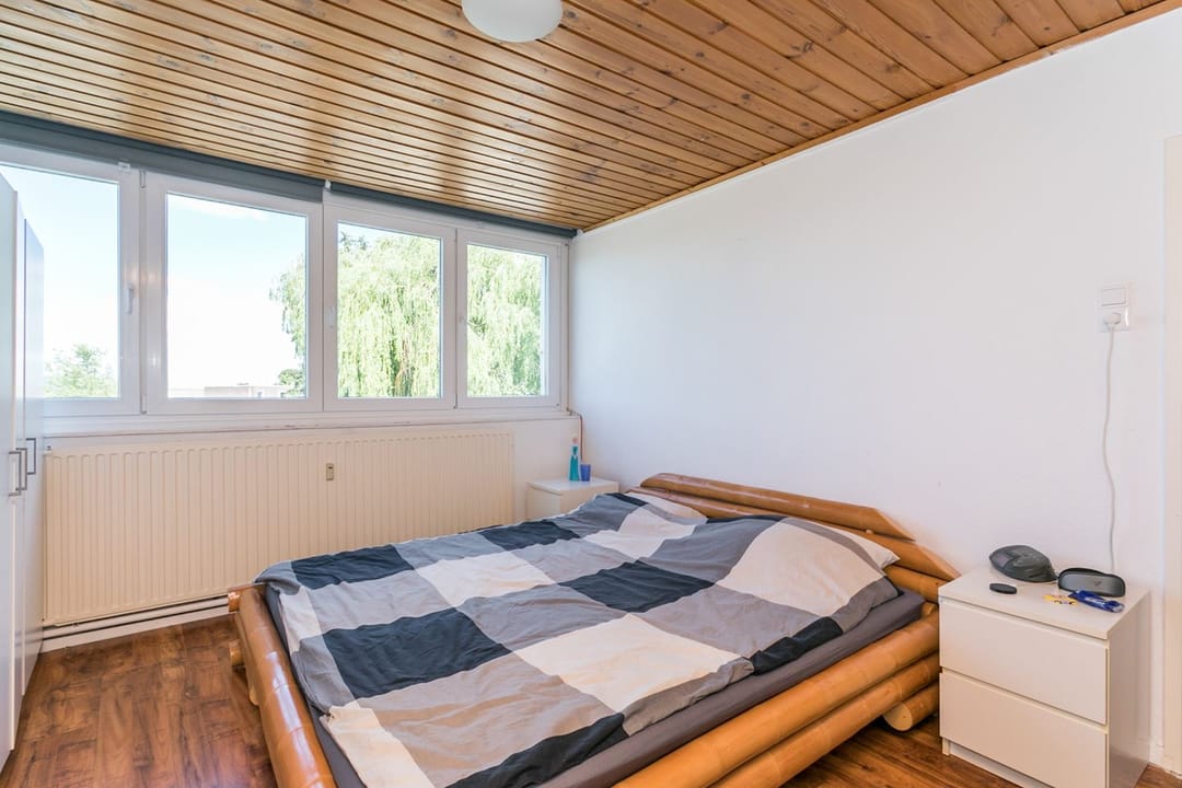 De slaapkamer is voorzien van een laminaatvloer en is groot ca. 15 m².