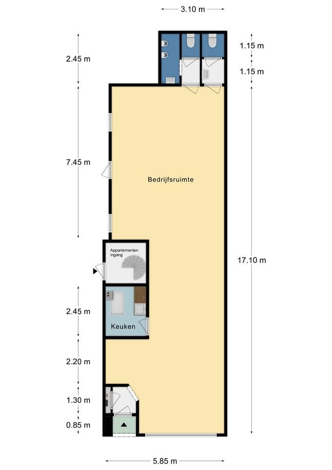 Voormalig café ook dienst gedaan als dansstudio, barber en maaltijdservice. Een separate dansvloer/vergaderruimte en een separate keuken. De gehele begane grond is groot ca. 95 m².