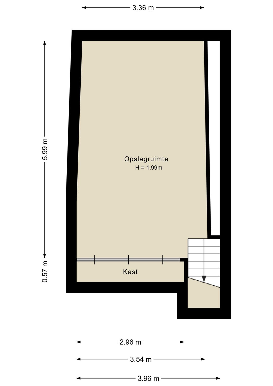 - Aan de achterzijde van het pand bevindt zich een kelderruimte met een oppervlakte van circa 22 m².