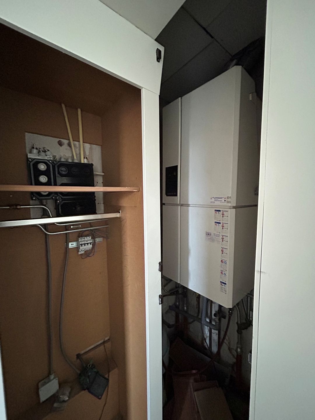 Een bijzonder element is dat de voormalige opslag deels is omgebouwd tot drie nieuwe garageboxen. Deze worden gebruikt door een derde eigenaar, die via een gevestigd recht van overpad toegang heeft tot het achterterrein. Via het zijpad is het terrein bereikbaar en is ruimte voor één à twee auto’s, waarbij rekening moet worden gehouden met het bestaande overpad.