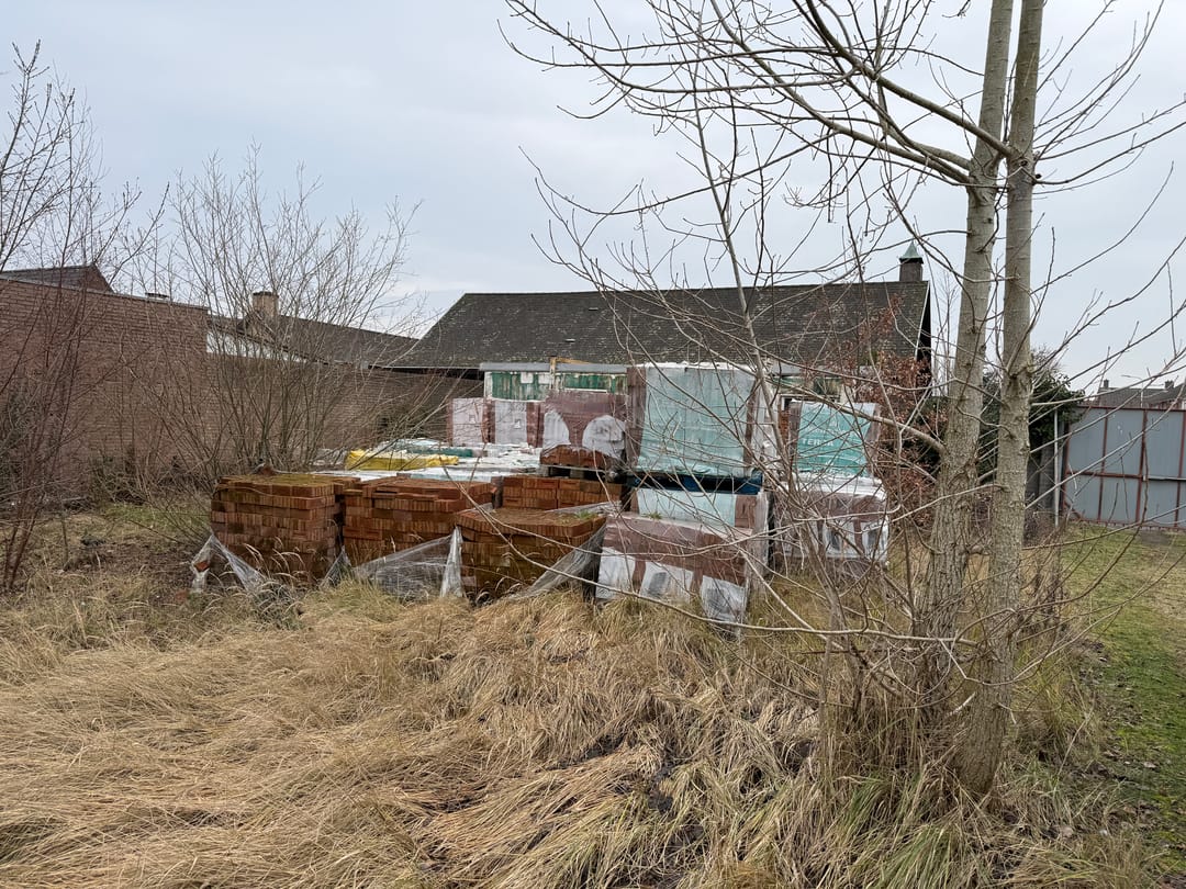 • Partij gevelstenen reeds op de bouwplaats aanwezig.