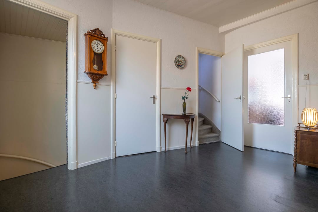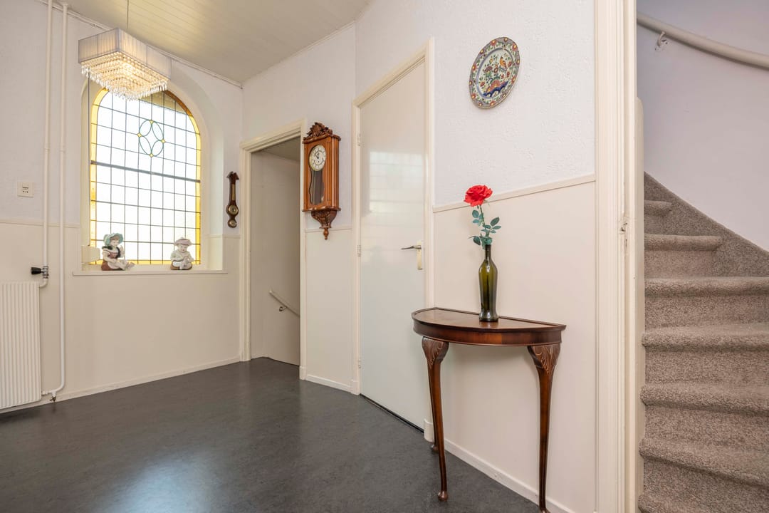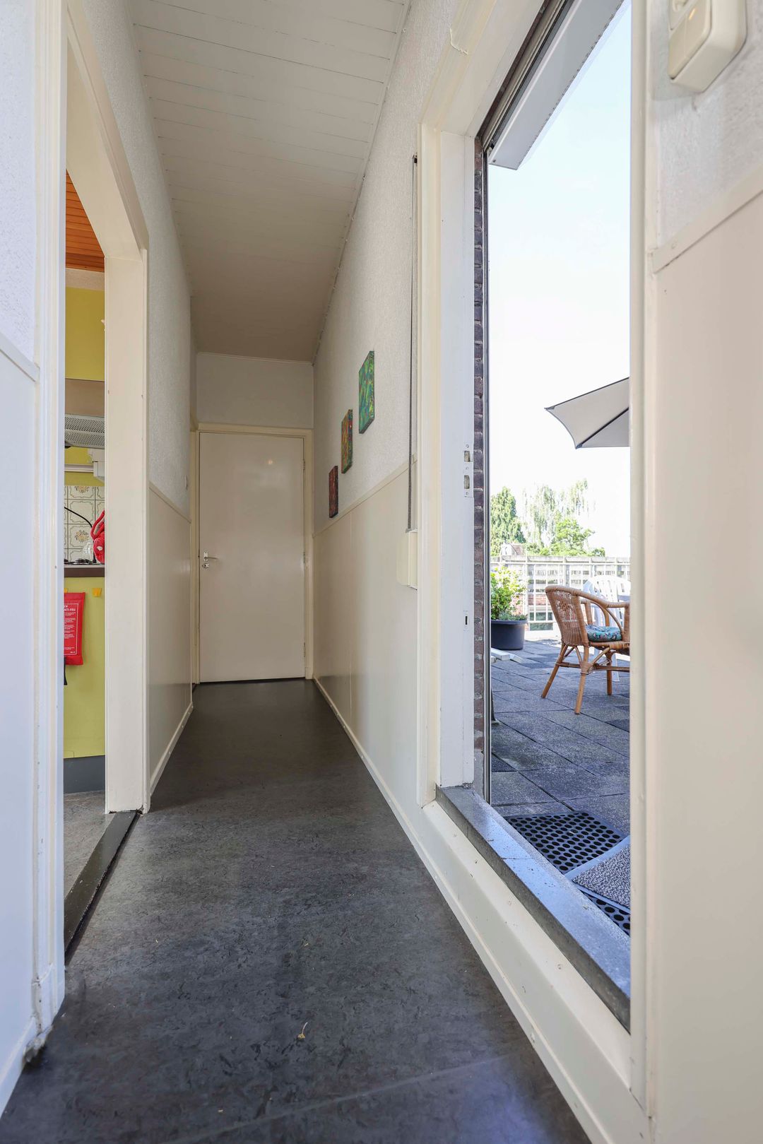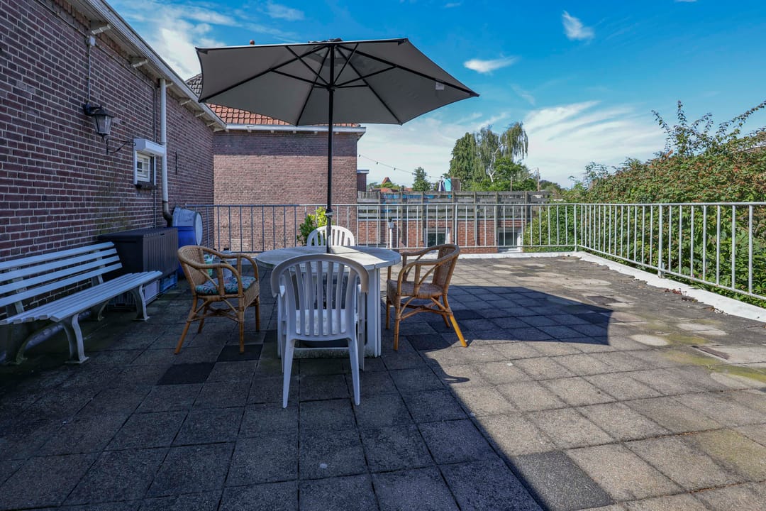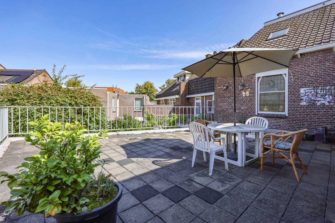 Rechts van de winkelruimte de entree naar de bovenwoning. Op de eerste verdieping een ruime overloop naar woonkamer, keuken en twee slaapkamers. In de keuken een eenvoudige inbouwkeuken voorzien van een gaskookplaat en een afzuigkap. Ouderslaapkamer met aansluitend een badkamer met ligbad en wastafelmeubel. Verder op de overloop een toilet, een loopdeur naar het dakterras, een vaste kast en de trapopgang naar de tweede verdieping. Vaste trap naar voorzolder. De voorzolder biedt toegang tot een derde slaapkamer met wastafel en een grote open zolder. Er is op de tweede verdieping nog voldoende ruimte voor het creëren een vierde slaapkamer. Aan de achterzijde van de bovenwoning een royaal dakterras.