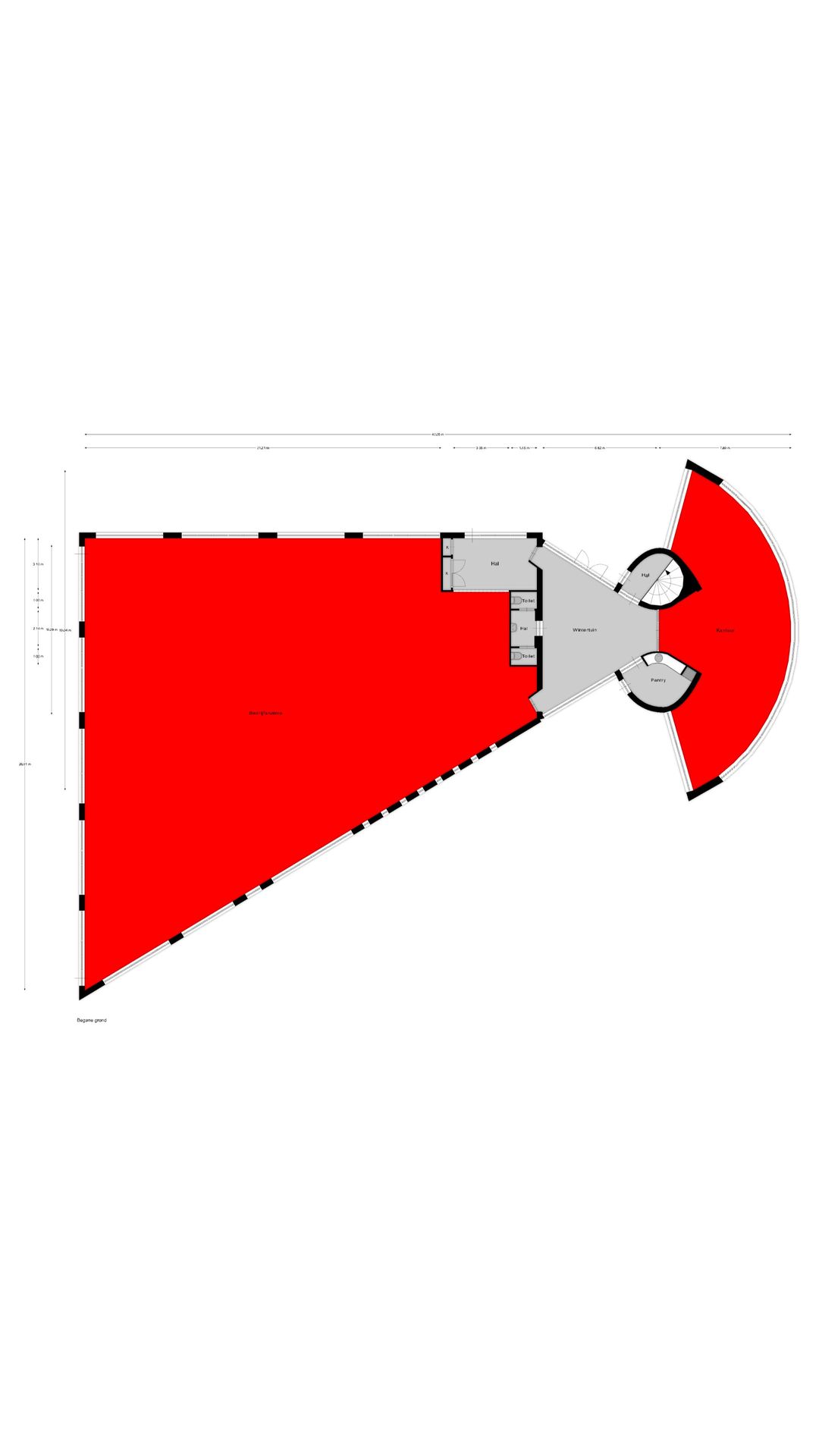 Het metrage van het object is als volgt opgesteld en gemeten conform NEN2580: